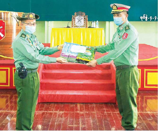 ယင်းနောက် နိုင်ငံတော်စီမံအုပ်ချုပ်ရေးကောင်စီဒုတိယဥက္ကဋ္ဌ ဒုတိယတပ်မတော် ကာကွယ်ရေးဦးစီချုပ်၊ ကာကွယ်ရေးဦးစီချုပ်(ကြည်း) ဒုတိယ ဗိုလ်ချုပ်မှူးကြီး စိုးဝင်းက သင်တန်းသားများနှင့် နည်းပြအရာရှိများ အတွက် စားသောက်ဖွယ်ရာများ ပေးအပ်ရာ ကျောင်းအုပ်ကြီးက လက်ခံရယူသည်။ အလားတူ ဒုတိယဗိုလ်ချုပ်ကြီး အောင်ဇော်အေး က သင်တန်းသားများအတွက် အားကစားပစ္စည်းများကို ပေးအပ်ရာ သင်တန်းသားများကိုယ်စား ဒုတိယကျောင်းအုပ်ကြီး က လက်ခံရယူသည်။