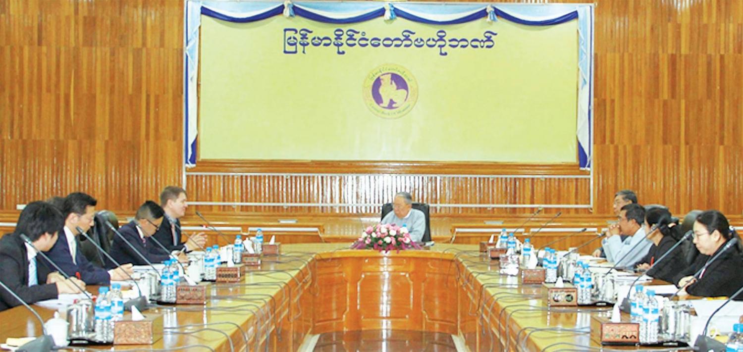 မြန်မာနိုင်ငံတော်ဗဟိုဘဏ် ဥက္ကဋ္ဌ ဦးကျော်ကျော်မောင်အား အာရှ - ပစိဖိတ်ဒေသ ငွေကြေး ခဝါချမှု တိုက်ဖျက်ရေးအဖွဲ့ (APG) အတွင်း ရေးမှူးရုံးမှ ဒါရိုက်တာ Mr. David Shannon ဦးဆောင်၍ မြန်မာနိုင်ငံဆိုင်ရာ ဂျပန်နိုင်ငံ သံရုံးတာဝန်ရှိသူ နှင့် ဂျပန်အပြည်ပြည်ဆိုင်ရာ ပူးပေါင်းဆောင်ရွက်ရေး အေဂျင်စီ (JICA) ၏ အကြံပေးပုဂ္ဂိုလ်ပါဝင်သော ကိုယ်စားလှယ် အဖွဲ့သည် ယမန်နေ့ နံနက် ၁၁ နာရီခွဲတွင် နေပြည်တော်ရှိ မြန်မာနိုင်ငံတော်ဗဟိုဘဏ် ဇမ္ဗူသီရိ အစည်းအဝေးခန်းမ၌ လာရောက် တွေ့ဆုံသည်။