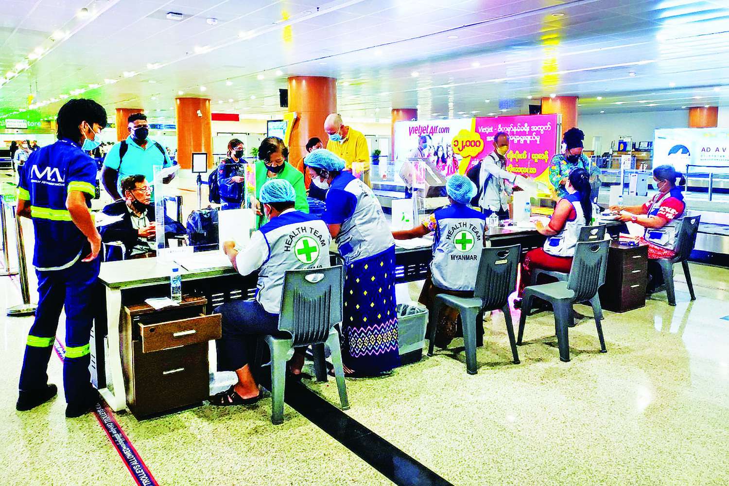 ရန်ကုန်အပြည်ပြည်ဆိုင်ရာလေဆိပ်သို့ နိုင်ငံတကာ ပုံမှန်လေကြောင်းခရီးစဉ် (Commercial Flight) များဖြင့် ဝင်ရောက်လာသော ခရီးသည်များအနေဖြင့် ကိုဗစ်-၁၉ စစ်ဆေးခြင်း အပါအဝင် လေဆိပ်ရှိ ဌာနဆိုင်ရာ လုပ်ငန်းများအား ကိုဗစ်-၁၉ ဆိုင်ရာ စည်းမျဉ်း၊ စည်းကမ်းနှင့်အညီ လေဆိပ်တွင် ကြာမြင့်ချိန် ၁ နာရီမှ ၂ နာရီအတွင်း ကုန်ကျစရိတ်သက်သာစွာဖြင့် အဆင်ပြေချောမွေ့စွာ အပြီးအစီး ဆောင်ရွက်နိုင်ပြီဖြစ်ကာ လေဆိပ်မှ အချိန်တိုအတွင်း မိမိတို့စီစဉ်ထားရှိသည့် ခရီးစဉ်အတိုင်း ဆက်လက်ထွက်ခွာနိုင်ပြီ ဖြစ်သည်။