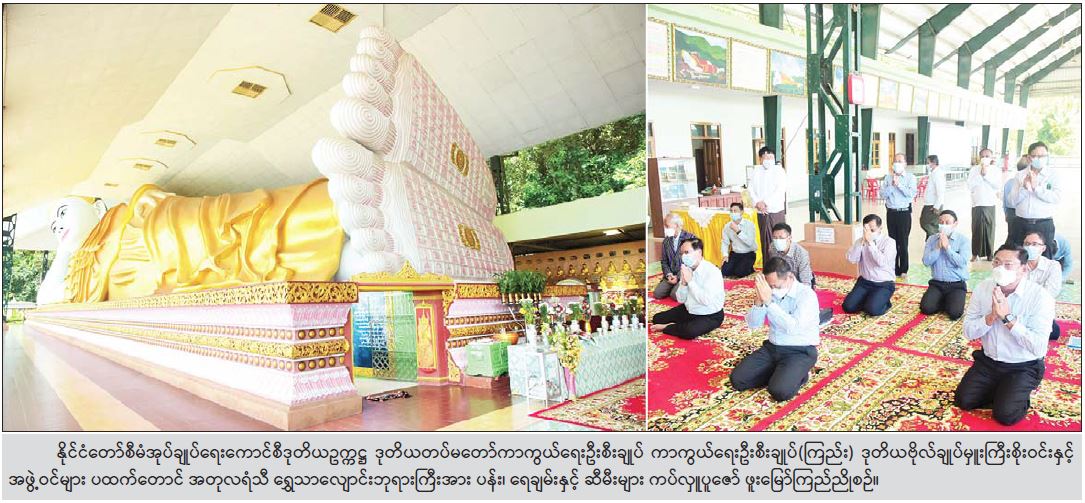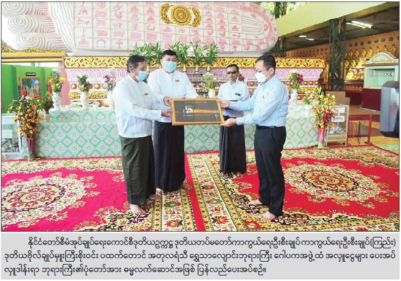 ယင်းနောက် နိုင်ငံတော်စီမံအုပ်ချုပ် ရေးကောင်စီဒုတိယဥက္ကဋ္ဌ ဒုတိယ တပ်မတော်ကာကွယ်ရေး ဦးစီးချုပ် ကာကွယ်ရေးဦးစီးချုပ်(ကြည်း)နှင့် အဖွဲ့ ဝင်များသည် ပထက်တောင် အတုလရံသီ ရွှေသာလျောင်းဘုရားကြီးအား ပန်း၊ ရေချမ်းနှင့် ဆီမီးများ ကပ်လှူပူဇော် ဖူးမြော်ကြည်ညို၍ အလှူငွေများ ပေးအပ်လှူဒါန်းရာ ဘုရားဂေါပကအဖွဲ့ဝင် များက လက်ခံရယူကြပြီး ဘုရားကြီး၏ ပုံတော်အား ဓမ္မလက်ဆောင်အဖြစ် ပြန်လည်ပေးအပ်သည်။ ထို့နောက် နိုင်ငံတော်စီမံအုပ်ချုပ်ရေး ကောင်စီ ဒုတိယဥက္ကဋ္ဌ ဒုတိယတပ်မတော်ကာကွယ် ရေးဦးစီးချုပ် ကာကွယ်ရေးဦးစီးချုပ် (ကြည်း)သည် ဘုရားကြီး ဧည့်သည်တော် မှတ်တမ်းစာအုပ်တွင် လက်မှတ်ရေးထိုး ခဲ့ကြောင်း သိရသည်။
