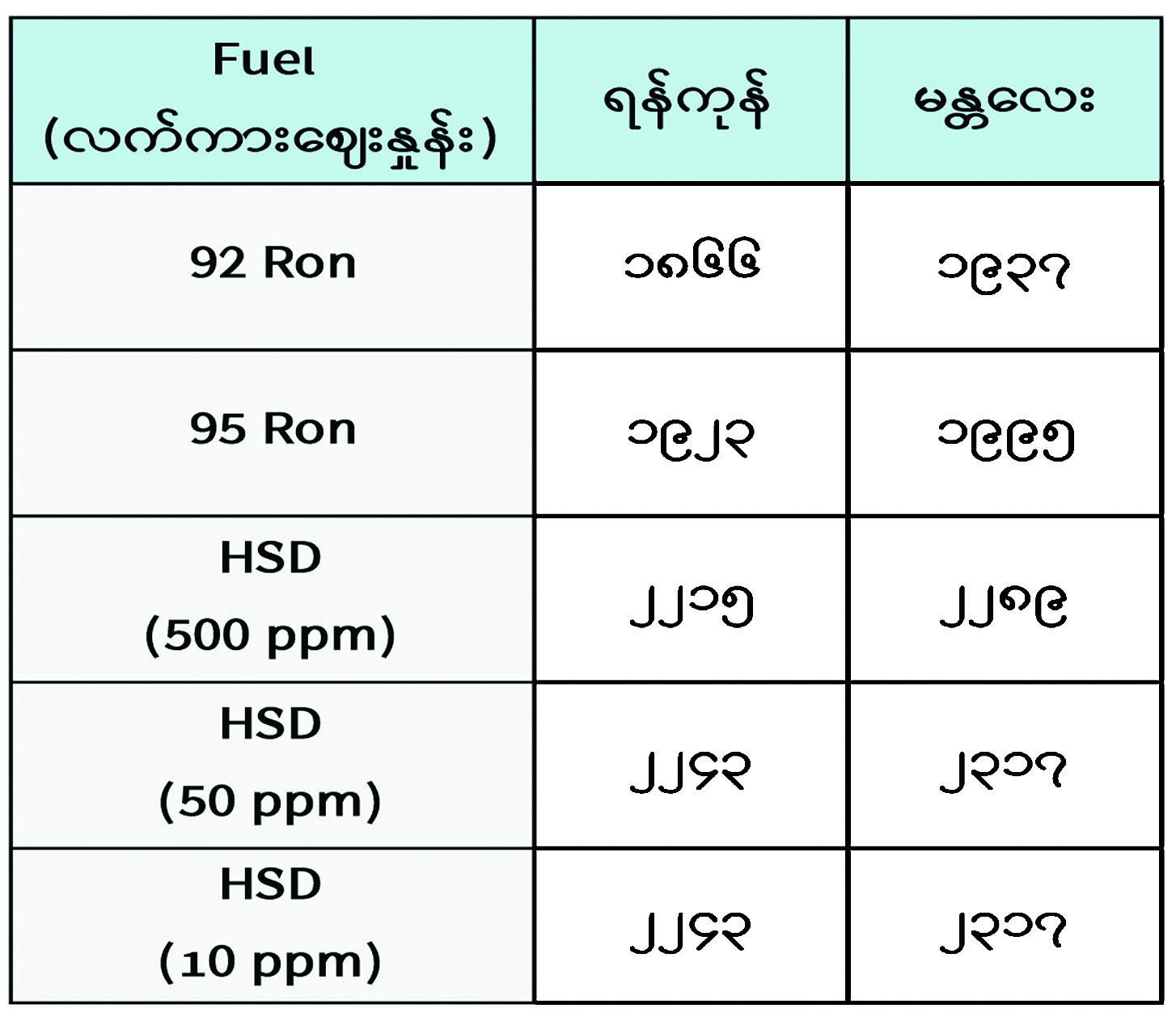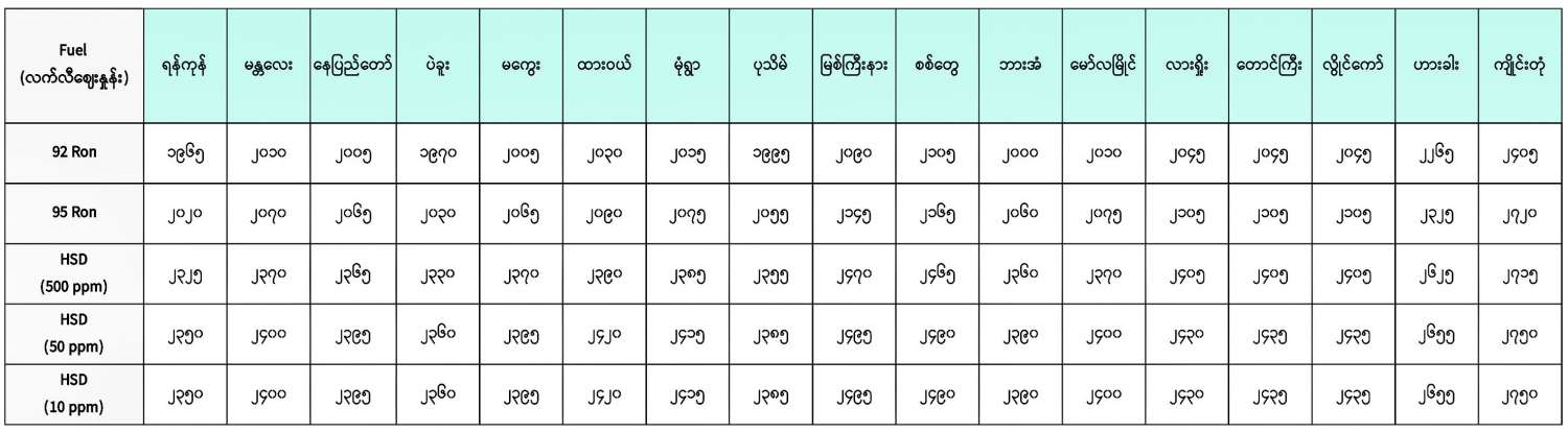 မှတ်ချက်။ (၁) MOPS ဈေးနှုန်းပေါ်တွင် အခြေခံတွက်ချက်ထားခြင်းဖြစ်ပါသည်။