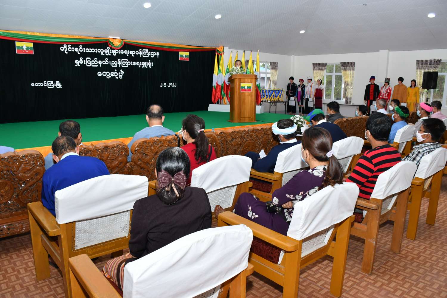 ထို့နောက် ပြည်ထောင်စုဝန်ကြီး၊ ဒုတိယဝန်ကြီးနှင့် ပြည်နယ်တိုင်းရင်းသားရေးရာဝန်ကြီးတို့က တိုင်းရင်းသားစာပေနှင့် ယဉ်ကျေးမှုလုပ်ငန်းများ ထိန်းသိမ်း မြှင့်တင်ဆောင်ရွက်နိုင်ရန်အတွက် ထောက်ပံ့ငွေများ ပေးအပ်သည်။