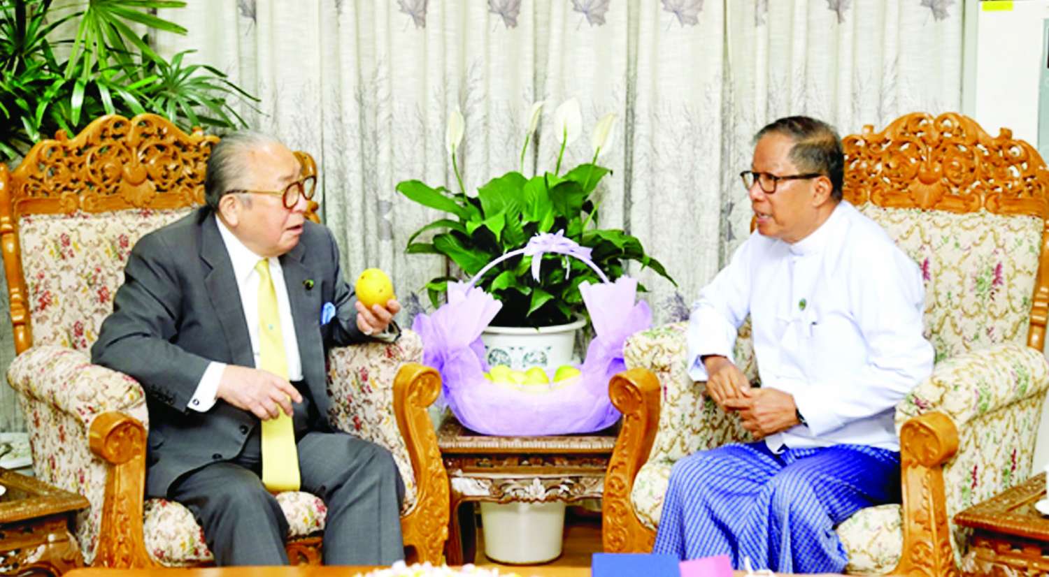 စိုက်ပျိုးရေး၊မွေးမြူရေးနှင့် ဆည်မြောင်းဝန်ကြီးဌာန ပြည်ထောင်စုဝန်ကြီး ဦးတင်ထွဋ်ဦးသည်ဂျပန်- မြန်မာအသင်းဥက္ကဋ္ဌ Mr. WATAN-ABE Hideo နှင့်အဖွဲ့အား ယနေ့နံနက်၁၀နာရီတွင် ပြည်ထောင်စုဝန်ကြီးရုံးဧည့်ခန်းမ၌ လက်ခံတွေ့ဆုံသည်။