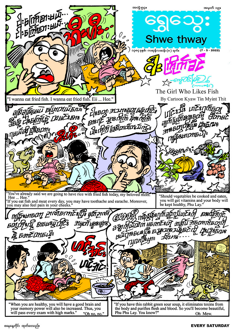 ၇-၅-၂၀၂၂ ရက်(စနေနေ့)တွင် ထွက်ရှိမည့် ရွှေသွေးဂျာနယ်အတွဲ (၅၄) အမှတ် (၁၉) ၌ အသားငါးများကိုမစားတော့ဘဲ ဟင်းသီး ဟင်းရွက်ကိုပဲ စားတော့မည်ဆိုသောဖူးလေး အကြောင်းရေးဖွဲ့ ထားသည့် “ငါးကြိုက်ခင်” မျက်နှာဖုံးကာတွန်း၊ ထူးဆန်းသော ငါးမျိုးစိတ်အချို့အကြောင်းကို တင်ဆက်ထားသည့် “ထူးဆန်းထွေလာငါးကမ္ဘာ” သုတဆောင်းပါးကဏ္ဍ၊ ကာတွန်းဝင်းထွဋ်ဦး၏ မျက်နှာဝက် ဟာသကာတွန်း၊ မစူးစမ်းမဆင်ခြင်ဘဲ သူတစ်ပါးအကျိုးကို ဆောင်ရွက်ခြင်းကြောင့် မိမိကိုယ်တိုင်ပါ ဒုက္ခရောက်ရပုံအကြောင်း ရေးဖွဲ့ထားသည့်“တုံတုံနှင့် လေးချမ်း” နှစ်မျက်နှာကာတွန်း၊ ဆရာဝန်ဆိုသည်မှာ လူနာများ၏ဖြစ်သမျှရောဂါများနှင့် သနားစိတ်၊ ကြင်နာစိတ်နှင့် ဝေဒနာများ သက်သာပျောက်ကင်းစေရန် ကုသပေးသောအားကိုးစရာ၊ လေးစားစရာ၊ ကျေးဇူးရှင်ဖြစ်ကြောင်း တင်ဆက်ထားသည့် “ကြင်နာတတ်ပါသည်” ဝတ္ထုကဏ္ဍ၊ သူငယ်ချင်းကို ပိုက်ဆံချေးရန် သဘောတူ တိုက်တွန်းပုံအကြောင်းဟာသဖြစ်ဖွယ် ရေးဖွဲ့ထားသည့် “ဖိုးတစ်တို”တစ်မျက်နှာ ကာတွန်း၊ ကလေးတို့ အနေဖြင့်မိမိ၏ ဆောင်ရွက်ချက်များ၊ အတွေးများ၊ ပေါင်းသင်းဆက်ဆံရေးစသည်တို့သည် အမှန် တကယ် ကောင်းမွန်မှန်ကန်သည့်အစစ်အမှန်များ ဖြစ်ရန်မိမိ၏နှလုံးသားနှင့် ဦးနှောက်ကို အမြဲဖွင့်ထားရန် လိုအပ်ကြောင်းရေးဖွဲ့ထားသည့် “အစစ်နဲ့အတု” ပုံပြင်ကဏ္ဍအပါအဝင် ဉာဏ်စမ်းကဏ္ဍ၊ အင်္ဂလိပ်စကားဝိုင်းကဏ္ဍနှင့် ကဗျာကဏ္ဍစုံလင်စွာဖြင့် ထွက်ရှိပြီဖြစ်ရာ တစ်စောင်လျှင် ငွေကျပ် ၄၀၀ ဖြင့် စာပေဗိမာန် စာအုပ်အရောင်းဆိုင်များတွင် ဝယ်ယူနိုင်ကြောင်း သိရသည်။