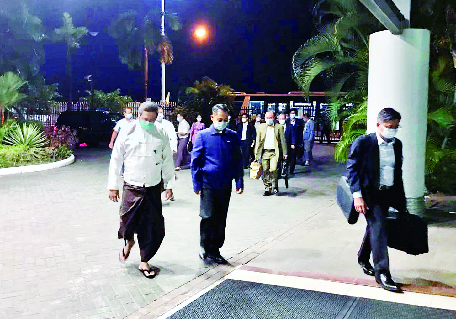 ပြည်ထောင်စုဝန်ကြီးနှင့်အတူ လုပ်ငန်းအဖွဲ့၊ အဖွဲ့ဝင်များဖြစ်ကြသည့် ကျန်းမာရေးဝန်ကြီးဌာန ဒုတိယဝန်ကြီး ဒေါက်တာအေးထွန်း၊ လူမှုဝန်ထမ်း၊ ကယ်ဆယ်ရေးနှင့် ပြန်လည်နေရာချထားရေးဝန်ကြီးဌာန ဒုတိယဝန်ကြီး ဦးအောင်ထွန်းခိုင်၊ နိုင်ငံခြားရေးဝန်ကြီးဌာန အမြဲတမ်းအတွင်းဝန် ဦးချမ်းအေးနှင့် သက်ဆိုင်ရာ ဝန်ကြီးဌာနများမှ တာဝန်ရှိသူများ လိုက်ပါကြကြောင်း သိရသည်။