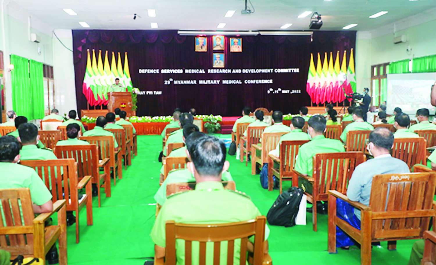 (၂၉) ကြိမ်မြောက် မြန်မာ့တပ်မတော် ဆေးပညာရပ်ဆိုင်ရာ နှီးနှောဖလှယ်ပွဲဖွင့်ပွဲကို ယနေ့နံနက်ပိုင်းတွင် နေပြည်တော်ရှိ တပ်မတော်ဆေးရုံကြီး (ခုတင်- ၁၀၀၀)နှင့် ရန်ကုန်တိုင်းဒေသကြီး မင်္ဂလာဒုံမြို့နယ်ရှိ တပ်မတော် အရိုးရောဂါအထူးကုဆေးရုံကြီး (ခုတင်-၅၀၀) တို့၌ Online Hybrid စနစ်ဖြင့် တစ်ပြိုင်နက်တည်း ကျင်းပရာ ကာကွယ်ရေးဦးစီးချုပ်ရုံး (ကြည်း) မှ စစ်ရေးချုပ် ဒုတိယဗိုလ်ချုပ်ကြီး မျိုးဇော်သိန်း၊ ရန်ကုန်တိုင်းစစ်ဌာနချုပ်တိုင်းမှူး ဗိုလ်ချုပ် ညွန့်ဝင်းဆွေ၊ တပ်မတော်ဆေးသုတေသနနှင့် ဖွံ့ဖြိုးတိုးတက်ရေး ကော်မတီဥက္ကဋ္ဌ၊ ဆေးဝန်ထမ်းညွှန်ကြားရေးမှူးရုံး ညွှန်ကြားရေးမှူး ဗိုလ်ချုပ် ကိုကိုလွင်၊ တပ်မတော် အရာရှိကြီးများ၊ ပါရဂူများ၊ နိုင်ငံတကာမှ ဆေးပညာရှင်များ၊ ဖိတ်ကြားထားသူများနှင့် စိတ်ပါဝင်စားသူများ တက်ရောက်ကြသည်။