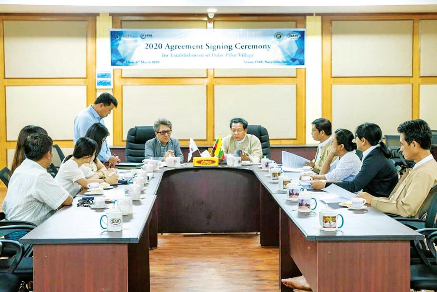 ပဲမျိုးစုံစိုက်ပျိုးထုတ်လုပ်မှု စံပြကျေးရွာသစ်ထူထောင်ရေး နားလည်မှုစာချွန်လွှာ လက်မှတ်ရေးထိုး
