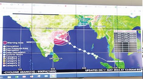 ဦးစွာ ဘင်္ဂလားပင်လယ်အော် အနောက်အလယ်ပိုင်းတွင် ဖြစ်ပေါ်နေသော အားကောင်းသော ဆိုင်ကလုန်းမုန်တိုင်း “အာစန်နီ (ASANI)” ၏ တည်နေရာ၊ ဗဟိုလေတိုက်နှုန်း၊ အိန္ဒိယနိုင်ငံ ကမ်းခြေဘက်သို့ မုန်တိုင်းကမ်းကပ်မည့် ခန့်မှန်းရွေ့လျားလမ်းကြောင်းများနှင့်တကွ ဆိုင်ကလုန်းမုန်တိုင်း၏ မြန်မာနိုင်ငံအပေါ် သက်ရောက်နိုင်မှုများကို တာဝန်ရှိသူတစ်ဦးက ရှင်းလင်းတင်ပြရာ အမြဲတမ်းအတွင်းဝန်က လိုအပ်သည်များ ဖြည့်စွက်တင်ပြသည်။