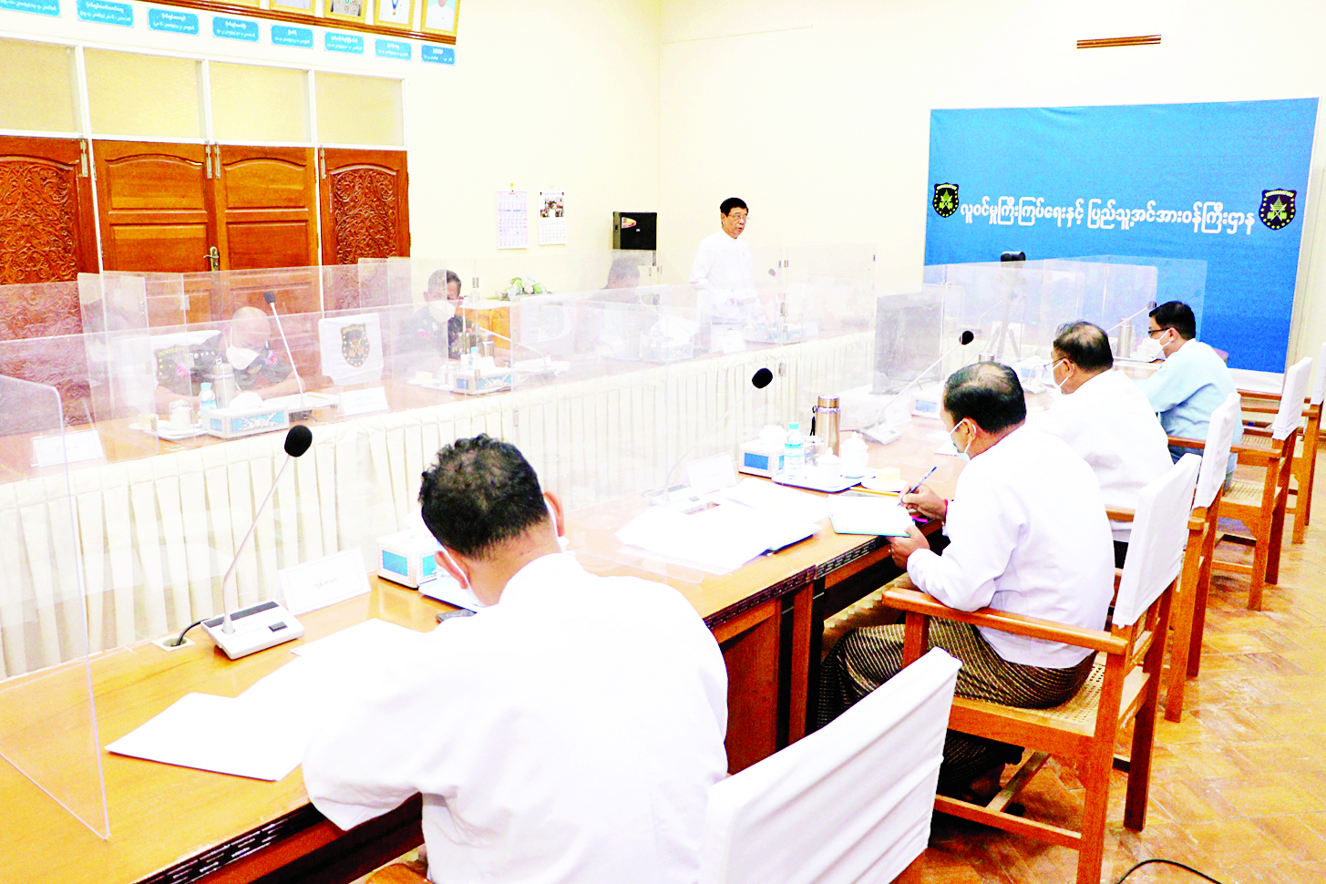 အစည်းအဝေးတွင် ဒုတိယဝန်ကြီး ဦးဌေးလှိုင်က မိမိတို့ဝန်ကြီးဌာနအနေဖြင့် Online e-Visa စနစ်ဖြင့် e-Visa (ကမ္ဘာလှည့်)ကို နိုင်ငံပေါင်း ၁၀၀၊ e-Visa (လုပ်ငန်း)ကို နိုင်ငံပေါင်း ၅၅ နိုင်ငံ ခွင့်ပြုဆောင်ရွက်နေရာမှ ကိုဗစ်-၁၉ ရောဂါ အခြေအနေကြောင့် ၂၀၂၀ ပြည့်နှစ် မတ် ၂၃ ရက်မှစ၍ ယာယီရပ်ဆိုင်း ထားခဲ့ပါကြောင်း၊ ယခုအခါ ကိုဗစ်-၁၉ ရောဂါဖြစ်ပွားမှု သိသိသာသာ လျော့နည်းကျဆင်းလာမှုကြောင့် e-Visa ဖြင့် (Business) လုပ်ငန်းဗီဇာကို ဧပြီ ၁ ရက်မှ ပြန်လည်ခွင့်ပြုပေးလျက်ရှိပါကြောင်း၊ ဧပြီ ၁၇ ရက်မှစ၍လည်း ရန်ကုန် အပြည်ပြည်ဆိုင်ရာလေဆိပ်မှ နိုင်ငံတကာလေကြောင်းလိုင်းများကို ပြန်လည် ဝင်/ထွက် ပျံသန်းခွင့်ပြုခဲ့ရာ e-Visa (Business) ဖြင့် လျှောက်ထားဝင်ရောက်လာမှုများ ရှိပါကြောင်း၊ ယခုထပ်မံ၍ e-Visa (Tourist) ကမ္ဘာလှည့်ဗီဇာကို ခွင့်ပြုချက်အရ ခွင့်ပြုဆောင်ရွက်ရန်ရှိရာ နိုင်ငံအတွင်း ဝင်ရောက်လာမည့် နိုင်ငံခြားသားများကို အဆင်ပြေစေရေးအတွက် လိုအပ်ချက်များကို ကြိုတင်ပြင်ဆင် ဆောင်ရွက်ရန်နှင့် သတင်းအချက်အလက် ပြည့်စုံမှန်ကန်စွာ ချပြနိုင်ရေးသည် အရေးကြီးပါကြောင်း၊ ထို့ကြောင့် မိမိတို့ဌာနမှ e-Visa (ကမ္ဘာလှည့်)ဖြင့် ဝင်ရောက်လာမည့် နိုင်ငံခြားသားများ ခွင့်ပြုချက် လျှောက်ထားရာတွင် အချက်အလက် ပြည့်စုံမှန်ကန်စေရေးအတွက် လိုအပ်ချက်များ ထုတ်ပြန်ပေးသကဲ့သို့ ပူးပေါင်းဆောင်ရွက်ကြမည့် ဆက်စပ်ဌာနများအနေဖြင့် လိုအပ်ချက်များ အဆင်သင့်ဖြစ်စေရေးနှင့် အသိပေးရန် လိုအပ်ချက်များ အချိန်မီထုတ်ပြန်ရေးအတွက် ယခုအစည်းအဝေးကို ဆောင်ရွက်ရခြင်း ဖြစ်ပါကြောင်း၊ e-Visa (ကမ္ဘာလှည့်) ခွင့်ပြုနိုင်ရေးအတွက် လုပ်ငန်းဆိုင်ရာလိုအပ်ချက်များကို စေ့စပ်သေချာစွာ ဆောင်ရွက်နိုင်ရန်နှင့် ပွင့်ပွင့်လင်းလင်း ဆွေးနွေးပေးကြရန်ဖြစ်ပါကြောင်း ရှင်းလင်းပြောကြားသည်။