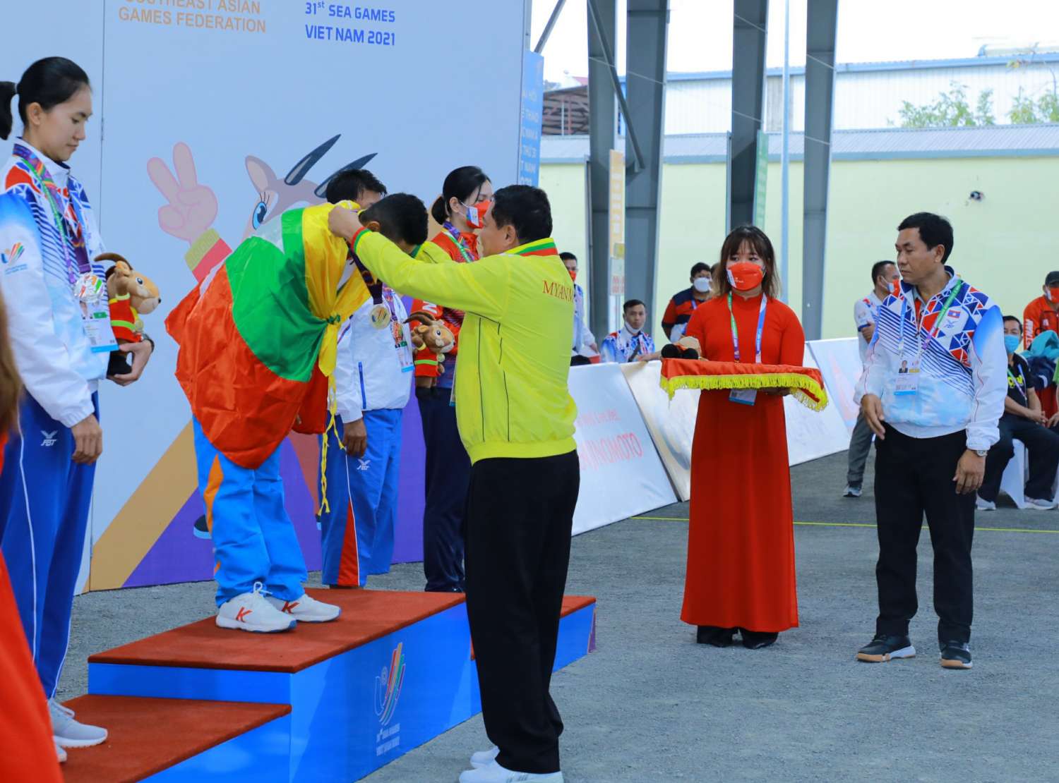 ယနေ့နံနက်ပိုင်းတွင် Hai Phong မြို့၌ Rowing အားကစားပြိုင်ပွဲများကို ကျင်းပခဲ့ရာ အမျိုးသမီး (၂)တက်လှော်ပြိုင်ပွဲတွင် မရွှေဇင်လတ်နှင့် မနီလာဝင်းတို့က ကြေးတံဆိပ်ဆုကိုလည်းကောင်း၊ Ha Noi National Sports Training Center ၌ ကျင်းပလျက်ရှိ သော ကာယဗလကာယအလှအားကစားပြိုင်ပွဲ ၅၅ ကီလိုတန်းတွင် မောင်ကျော်မင်းသန်းက ကြေးတံဆိပ်ဆုကိုလည်းကောင်း အသီးသီးရရှိခဲ့ကြောင်း သတင်းရရှိပါသည်။