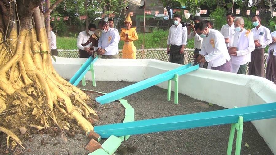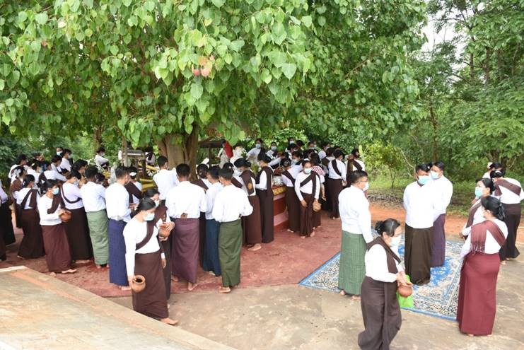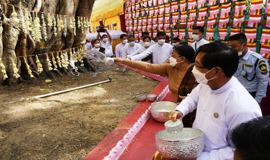 ထို့နောက် တိုင်းဒေသကြီးဝန်ကြီးချုပ်၊ အလယ်ပိုင်းတိုင်းစစ်ဌာနချုပ်တိုင်းမှူးနှင့် တိုင်းဒေသကြီးဝန်ကြီးများက ဆရာတော်ကြီးများအား လှူဖွယ်ဝတ္တုပစ္စည်းများ ဆက်ကပ်လှူဒါန်းကြပြီး အနုမောဒနာ ရေစက်ချတရားနာယူကြကာ အခမ်းအနားကို ရုပ်သိမ်းလိုက်သည်။