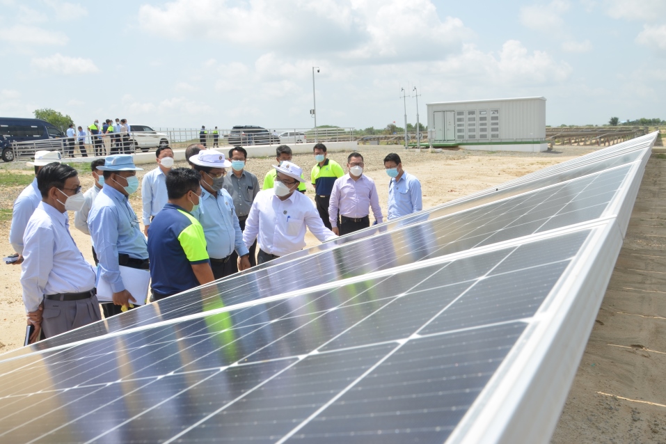 ထို့နောက် ပြည်ထောင်စုဝန်ကြီးနှင့်အဖွဲ့သည် ဓာတ်အားထိန်းချုပ်ခန်းအတွင်း နေရောင်ခြည်စွမ်းအင်မှ လျှပ်စစ်ဓာတ်အားများထုတ်လုပ်ပြီး နိုင်ငံတော်ဓာတ်အားစနစ် (National Grid System)သို့ ချိတ်ဆက်ပို့လွှတ်ဖြန့်ဖြူးပေးနေမှုနှင့် စက်ရုံဧရိယာအတွင်း Solar Panal များ တပ်ဆင်ထားမှုကို လှည့်လည်ကြည့်ရှုစစ်ဆေးရာ ဒုတိယဝန်ကြီး ဒေါက်တာအောင်ဇေယျက လိုအပ်သည်များကို ဖြည့်စွက်ရှင်းလင်းတင်ပြသည်။