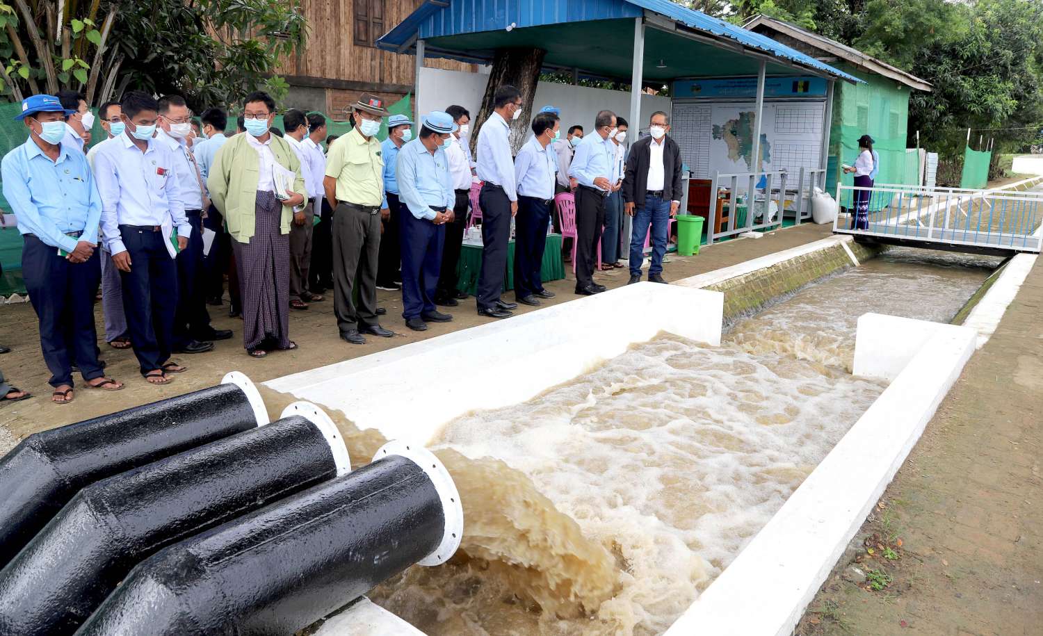 ထိုမှတဆင့် ပြည်ထောင်စုဝန်ကြီးနှင့်အဖွဲ့သည် ကျောက်တံခါးမြို့နယ် မြို့ချောင်းကျေးရွာအနီးရှိ ရဲနွယ်ရေလှောင်တမံသို့ ရောက်ရှိကြပြီး တမံကြံ့ခိုင်ရေးအတွက် ကျောက်သားအားဖြည့် တမံပိုးခြင်းလုပ်ငန်းကို ကြည့်ရှုစစ်ဆေး၍ လိုအပ်သည်များ ဆွေးနွေးမှာကြားသည်။