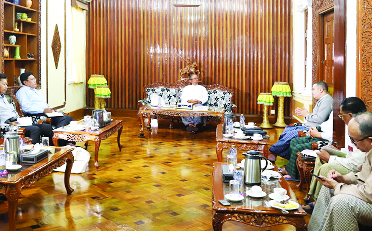 မွန်းလွဲပိုင်းတွင် မြန်မာနိုင်ငံဆန်စပါးအသင်းချုပ်မှ တာဝန်ရှိသူများနှင့်တွေ့ဆုံ၍ ပြည်တွင်းဆန်စားသုံးမှုနှင့် ပြည်ပတင်ပို့မှုအခြေအနေ၊ ငွေကြေးနှုန်းထားများနှင့် ဈေးကွက်အခြေအနေ၊ လက်ရှိ စပါးပေါက်ဈေးကြောင့် တောင်သူများ အကျိုးအမြတ် တိုးတက်လာမှုနှင့်အတူ ဓါတ်မြေဩဇာ ဝယ်လိုအား မြင့်တက်နေမှုကြောင့် ယခုနှစ်မိုးစပါး စိုက်ပျိုးရာသီတွင် တိုးတက်စိုက်ပျိုးလာမည့် စပါးစိုက်ဧရိယာများအတွက် လိုအပ်လျက်ရှိသည့် သွင်းအားစုများ အချိန်မီဖြည့်ဆည်းပေးနိုင်ရေးဆိုင်ရာကိစ္စရပ်များကို ဆွေးနွေးခဲ့ကြသည်။