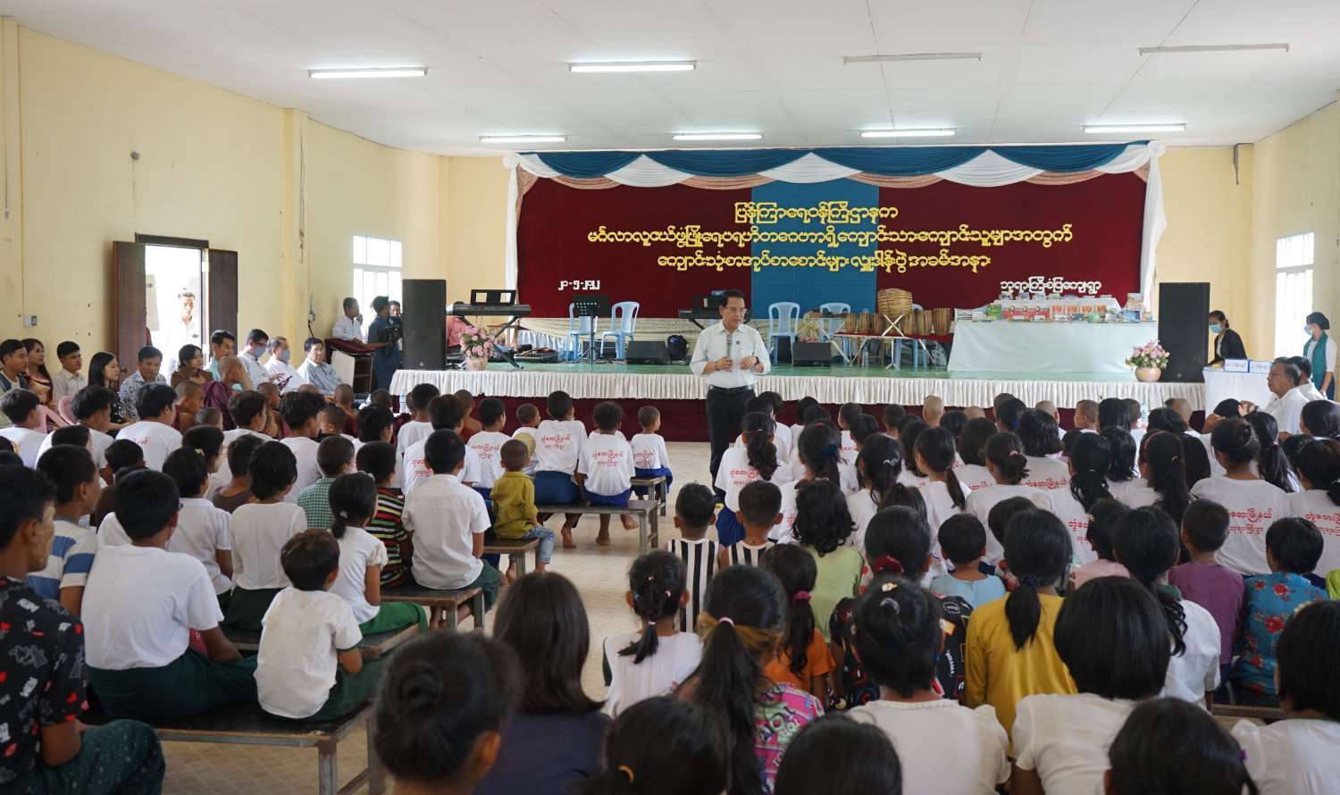 ယင်းနောက် မင်္ဂလာလူငယ်ဖွံ့ဖြိုးရေးပရဟိတဂေဟာခန်းမ၌ ကျောင်းသား၊ ကျောင်းသူများအတွက် အလှူငွေနှင့်စာအုပ်လှူဒါန်းပွဲ၊ မြန်မာ့အသံနှင့်ရုပ်မြင်သံကြားမှ တေးဂီတအဖွဲ့ဖြင့် ဖျော်ဖြေတင်ဆက်ပွဲကိုကျင်းပရာ ပြည်ထောင်စုဝန်ကြီးနှင့်တိုင်းဒေသကြီးဥပဒေချုပ်တို့က ကျောင်းသား၊ ကျောင်းသူများကို အားပေးစကားပြောကြားကြသည်။