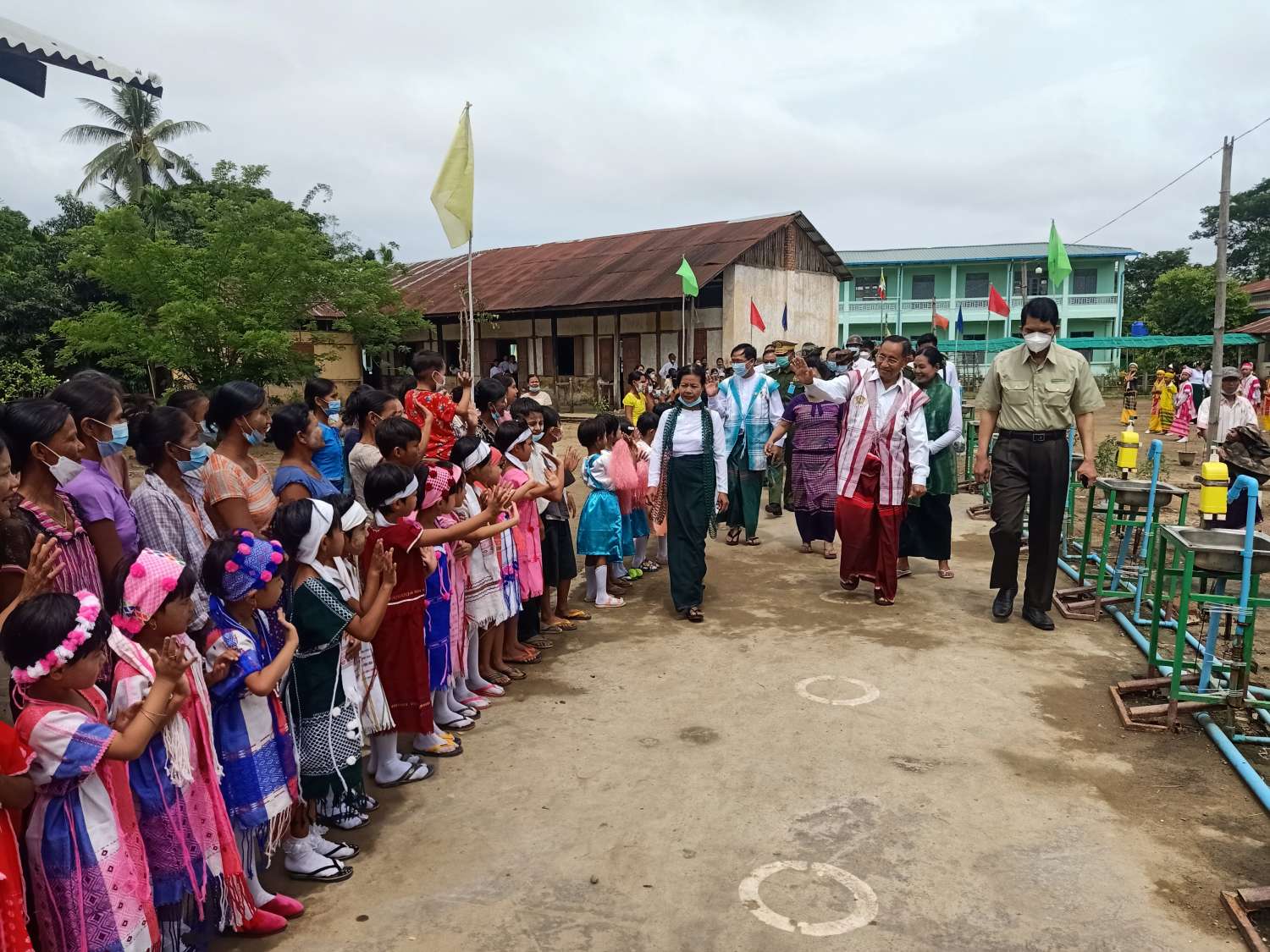 ယင်းနောက် နိုင်ငံတော်စီမံအုပ်ချုပ်ရေးကောင်စီဝင်၊ တိုင်းဒေသကြီးဝန်ကြီးချုပ်နှင့် တိုင်းမှူးတို့သည်ကျောင်းဆောင်သစ်ကို လှည့်လည်ကြည့်ရှုကြသည်။