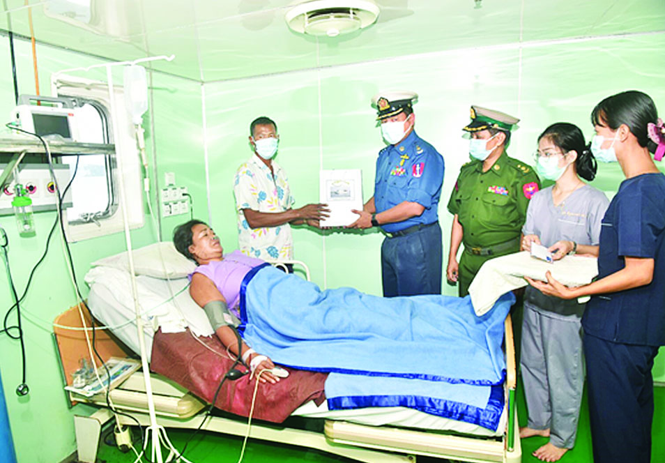 ၎င်းအပြင် သားအိမ်အတွင်း ၁၂ ပေါင်ခန့်ရှိ အသားကျိတ်တည်နေသော လူနာတစ်ဦးအား ခွဲစိတ်ကုသသည့် အကြီးစားခွဲစိတ်မှုကို ဆေးရုံရေယာဉ်ပေါ်ရှိ ခွဲစိတ်ခန်း၌ အောင်မြင်စွာခွဲစိတ်ပေးနိုင်ခဲ့သည့်အပြင် ဆေးရုံတက်ရောက်ကုသရန်လိုအပ်သော ဒေသခံပြည်သူ ၁ ဦးကိုလည်း ဆေးရုံရေယာဉ်ပေါ်၌ ဆေးရုံတင်ကုသပေးနိုင်ခဲ့သည်။ အဆိုပါ အကြီးစားခွဲစိတ်မှုခံယူခဲ့သည့်လူနာအား ကာကွယ်ရေးဦးစီးချုပ် (ရေ) ဗိုလ်ချုပ်ကြီး မိုးအောင်ကပေးအပ်သည့် ထောက်ပံ့ငွေနှင့် လက်ဆောင်ပစ္စည်းများကို တာဝန်ရှိသူတစ်ဦးက ကိုယ်စားပေးအပ်ခဲ့ပြီး အားပေးစကားပြောကြားခဲ့ကြောင်း သတင်းရရှိသည်။