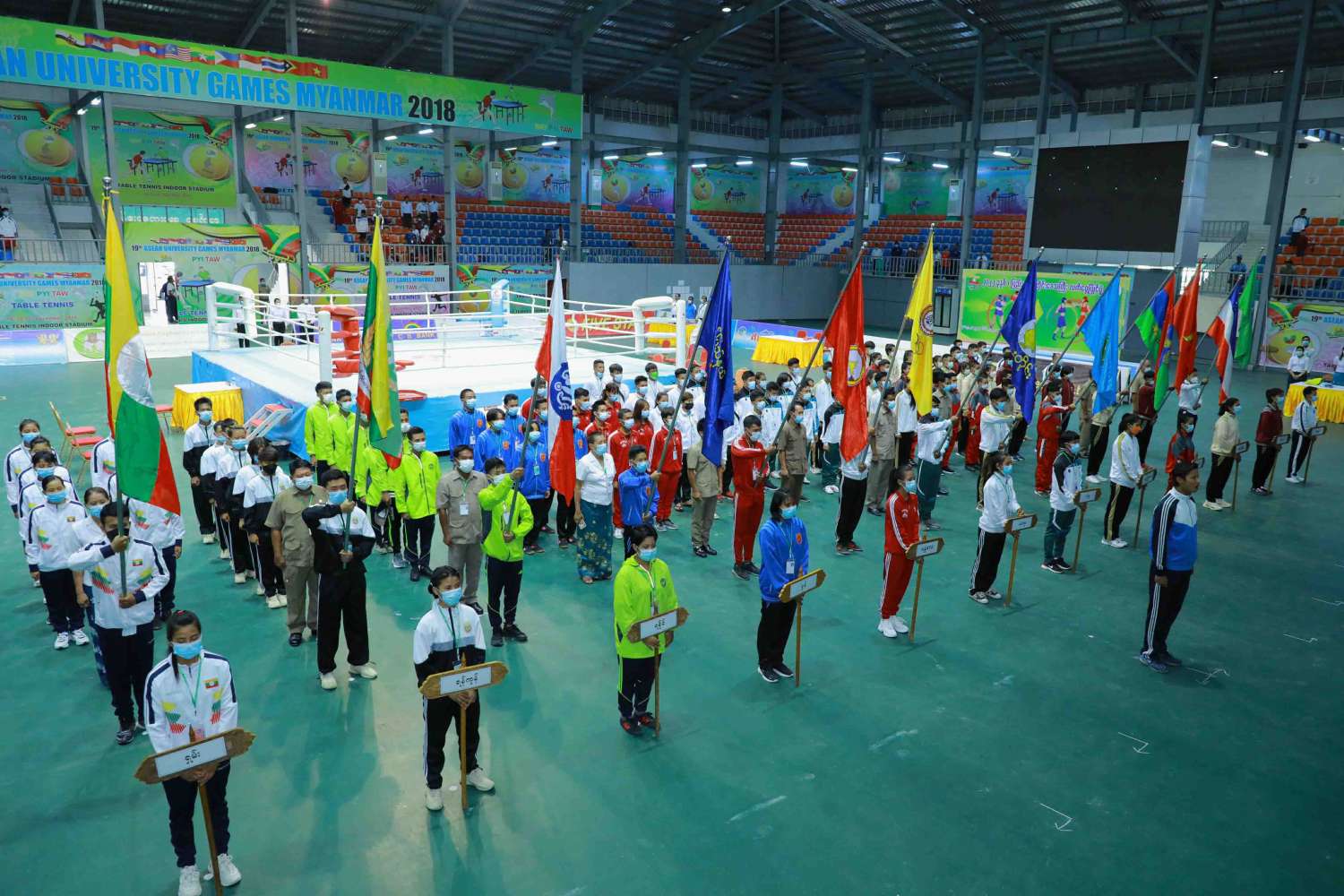 ယင်းနောက် ပြိုင်ပွဲဝင်အားကစားသမားများက အားကစားသစ္စာအဓိဌာန်ရွတ်ဆို၍ နိုင်ငံတော်စီမံအုပ်ချုပ်ရေးကောင်စီဝင်များနှင့် ပြည်ထောင်စုဝန်ကြီးတို့က ပြိုင်ပွဲဝင်အားကစားသမားများကို လိုက်လံနှုတ်ဆက်သည်။