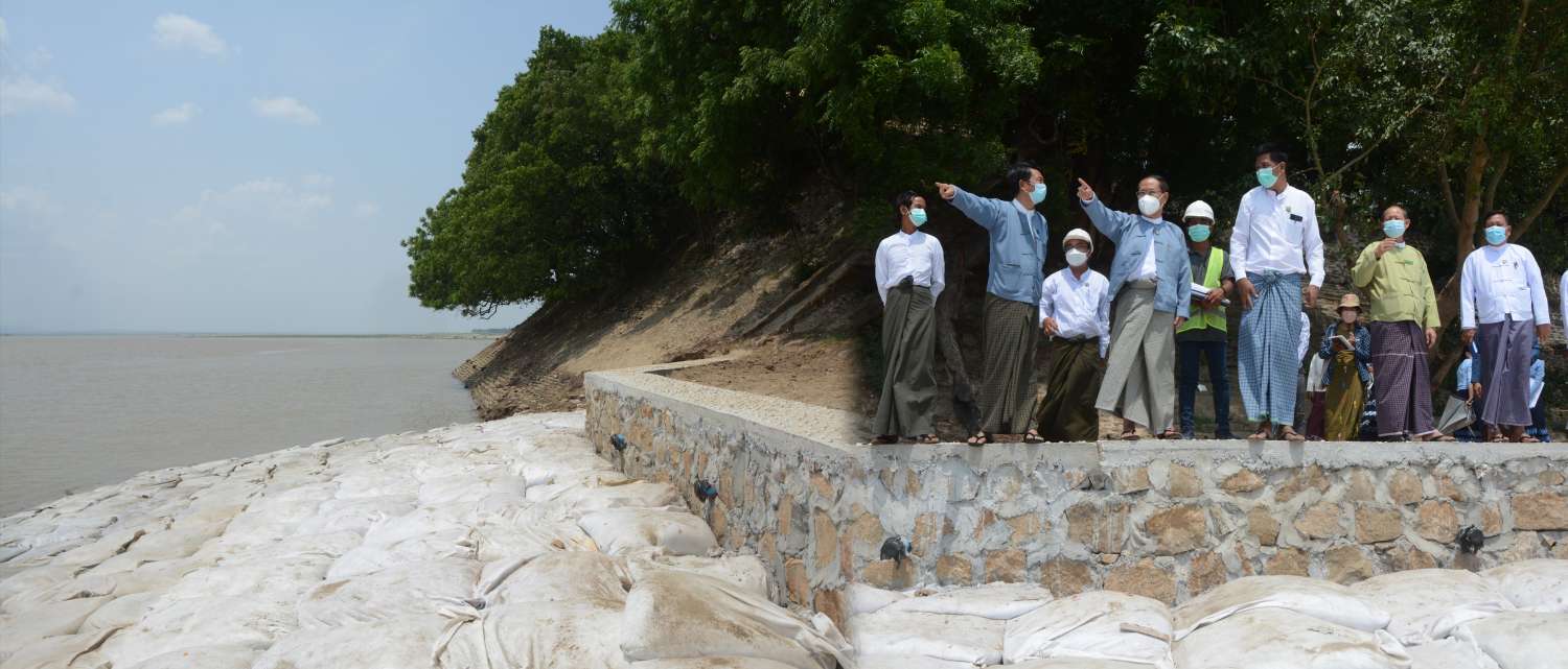 ယင်းနောက် လောကနန္ဒာစွယ်တော်မြတ် စေတီတော်နှင့်လောကနန္ဒာဘေးမဲ့တောဥယျာဉ်တို့၏ မြစ်ကမ်းပါးများကို ဧရာဝတီမြစ်ရေတိုက်စားမှုမှကာကွယ်ရန် မြစ်ကမ်းပါးထိန်းသိမ်းမှု လုပ်ငန်းခွင်ရှင်းလင်း‌ဆောင်သို့ရောက်ရှိပြီး ရေအရင်းအမြစ်နှင့် မြစ်ချောင်းများ ဖွံ့ဖြိုးတိုးတက်ရေးဦးစီးဌာန တာဝန်ရှိသူက လုပ်ငန်းဆောင်ရွက်မှုအဆင့်ဆင့်ကို ရှင်းလင်းတင်ပြရာ ပြည်ထောင်စုဝန်ကြီးက ယခုမိုးဦးကာလရောက်ရှိပြီဖြစ်သဖြင့် မြစ်ရေမတိုးမီဆောင်ရွက်ရန် ကျန်ရှိသောလုပ်ငန်းများ အမြန်ပြီးစီးအောင်ဆောင်ရွက်ရန် လိုအပ်ကြောင်း၊ ထို့အတူကြိုတင်ကာကွယ်ထိန်းသိမ်းရန် လိုအပ်သည်များကိုလည်း ဝန်ကြီးဌာနချင်း ညှိနှိုင်းဆောင်ရွက်သွားမည်ဖြစ်ကြောင်း မှာကြားသည်။