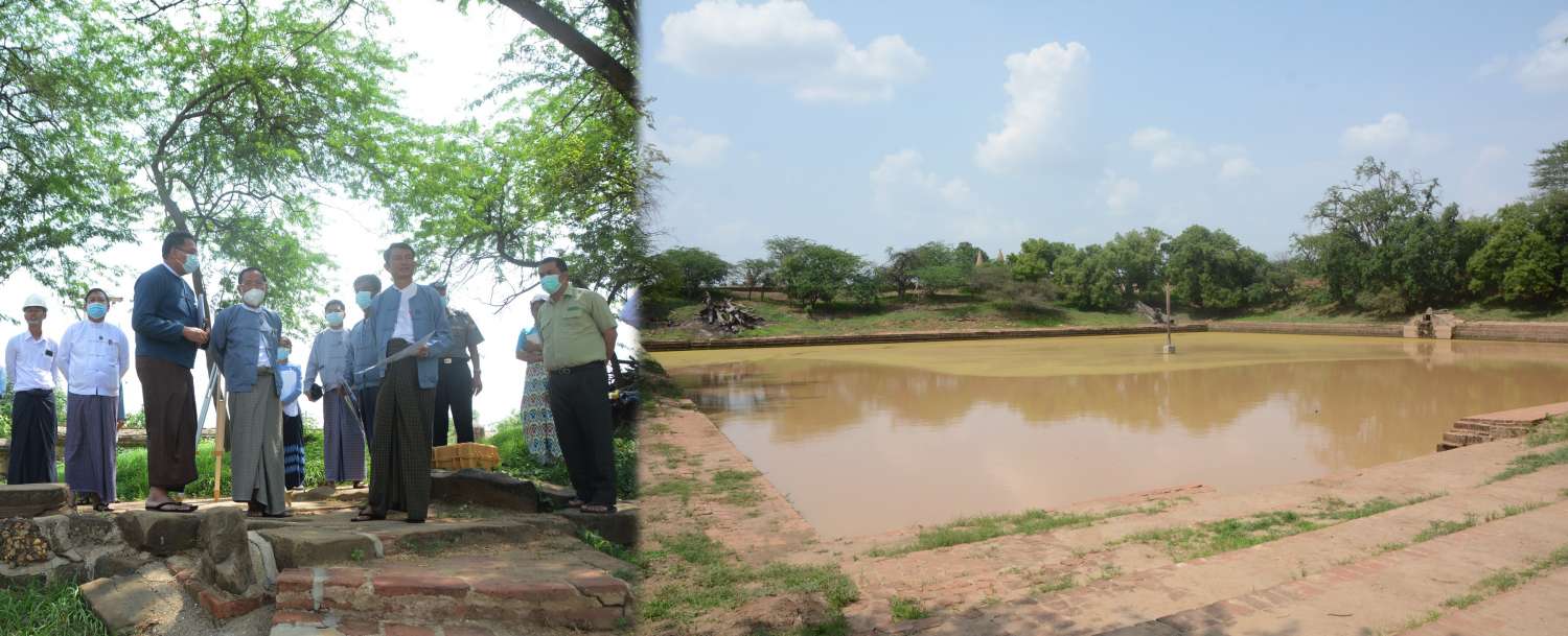 ဆက်လက်၍ ပြည်ထောင်စုဝန်ကြီးနှင့်အဖွဲ့သည် ညောင်လက်ဖက်ကန်သို့ ရောက်ရှိပြီး ပြည်ထောင်စုဝန်ကြီးက ပုဂံယဉ်ကျေးမှုအမွေအနှစ်ဒေသရှိ ရှေးဟောင်းအဆောက်အအုံများ ယနေ့ထိ တည်မြဲနေခြင်းသည် ပုဂံခေတ်ရေအသုံးချမှုနှင့် ရေစီမံခန့်ခွဲမှု ကောင်းမွန်မှုကြောင့်ဖြစ်ကြောင်း၊ ဆက်လက်ပြီး တည်တံ့ခိုင်မြဲစေရန်အတွက် ပုဂံခေတ်ရေလမ်းကြောင်းများကို စနစ်တကျဖော်ထုတ် ထိန်းသိမ်းသွားမှသာ ပုဂံဒေသအတွင်းတွင် ရေစီးရေလာ ကောင်းမွန်ပြီး ရေကြီးရေလျှံမှုကို ကာကွယ်နိုင်မည်ဖြစ်ပါကြောင်းမှာကြားပြီး ရေလမ်းကြောင်းဖော်ထုတ်ပြုပြင်နေသည့် လုပ်ငန်း ဆောင်ရွက်နေမှုများကို ကြည့်ရှုစစ်ဆေးသည်။