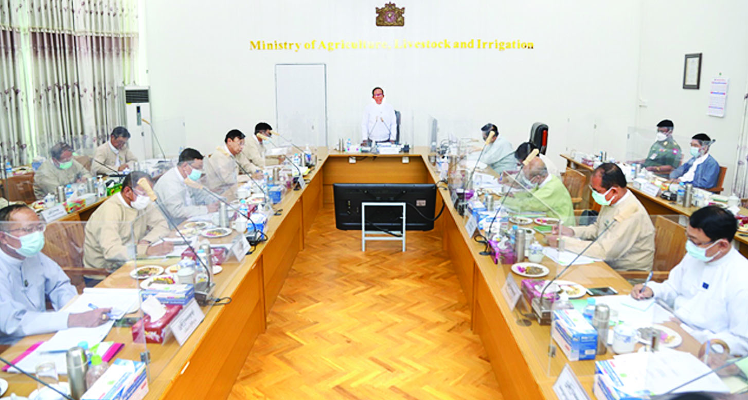 မြေယာများကို အကျိုးရှိရှိ အသုံးချနိုင်ရန်နှင့် စိုက်ပျိုးမြေများပေါ်တွင် သီးနှံစိုက်ပျိုးရေးနှင့် မွေးမြူရေးဆိုင်ရာ ထုတ်လုပ်မှုစွမ်းအား တိုးတက်လာစေရန် စိုက်ပျိုးရေ ဖူလုံစွာရရှိရေး၊ လယ်ယာသုံး စက်ကိရိယာများနှင့် သွင်းအားစုပစ္စည်းများ အသုံးပြုနိုင်ရေး လုပ်ငန်းများကို ဘက်စုံကဏ္ဍစုံ အလေးထား ဆောင်ရွက်လျက်ရှိကြောင်း ယနေ့ မွန်းလွဲပိုင်းက စိုက်ပျိုးရေး၊ မွေးမြူရေးနှင့်ဆည်မြောင်းဝန်ကြီးဌာန ပြည်ထောင်စုဝန်ကြီးရုံး အစည်းအဝေးခန်းမ၌ ကျင်းပသည့် ဗဟိုလယ်ယာမြေ စီမံခန့်ခွဲမှုအဖွဲ့၏ (၆)ကြိမ်မြောက် လုပ်ငန်းညှိနှိုင်း အစည်းအဝေးတွင် ဗဟိုလယ်ယာမြေ စီမံခန့်ခွဲမှုအဖွဲ့ဥက္ကဋ္ဌ ပြည်ထောင်စုဝန်ကြီး ဦးတင်ထွဋ်ဦးက ပြောကြား သည်။