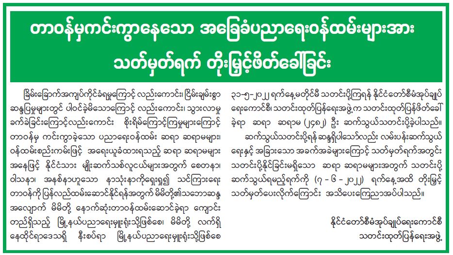 ဝန်ကြီးဌာန ကြေညာချက်များ