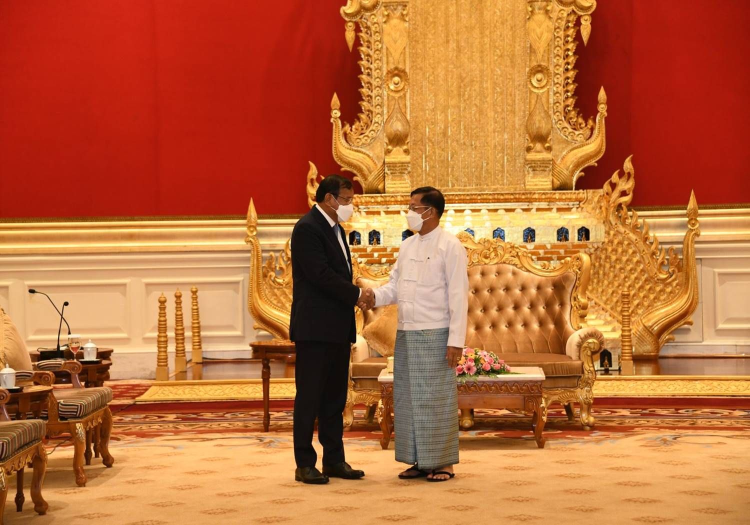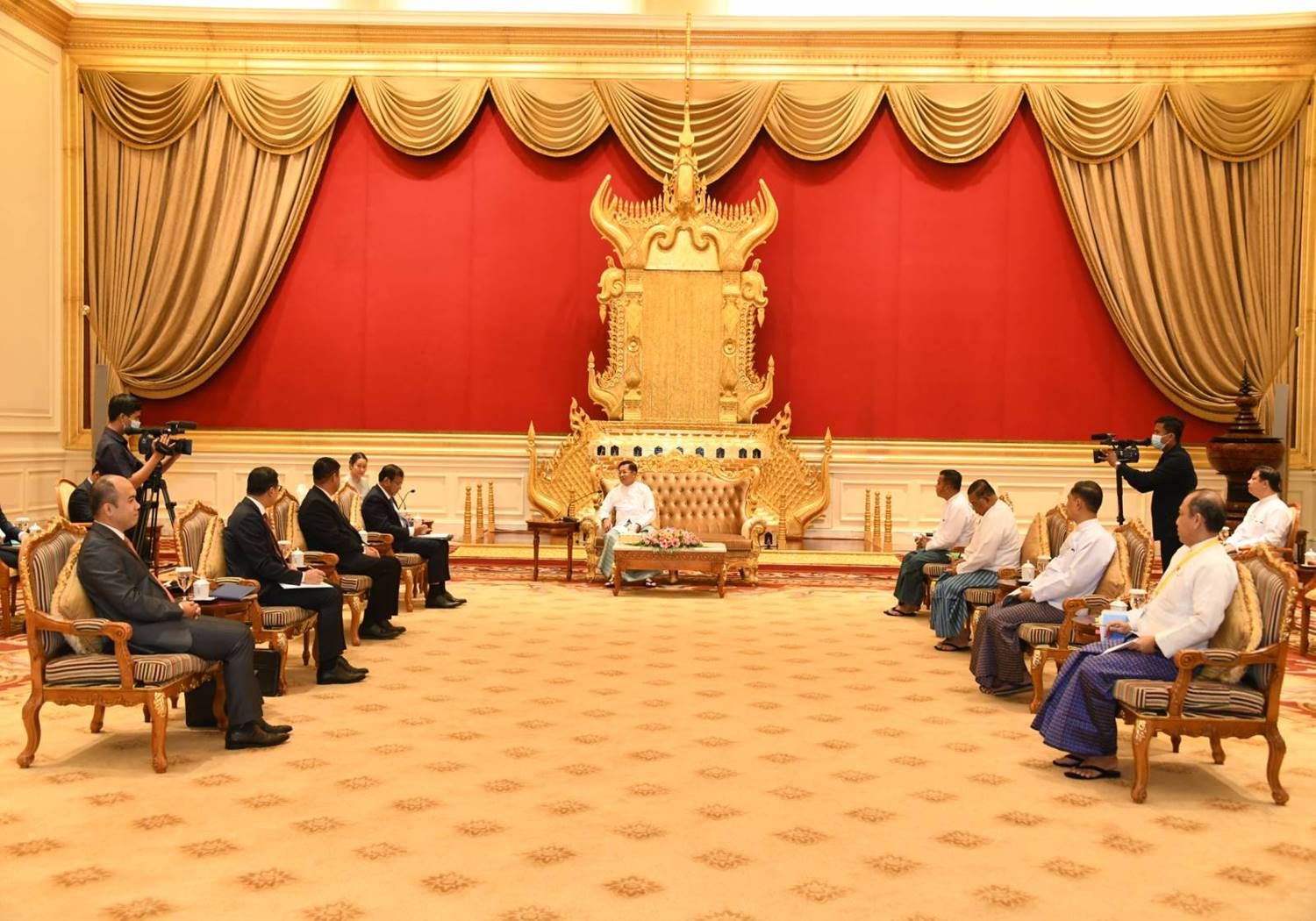 နိုင်ငံတော်စီမံအုပ်ချုပ်ရေးကောင်စီဥက္ကဋ္ဌ နိုင်ငံတော်ဝန်ကြီးချုပ် ဗိုလ်ချုပ်မှူးကြီး မင်းအောင်လှိုင် အာဆီယံအလှည့်ကျဥက္ကဋ္ဌ၏ မြန်မာနိုင်ငံဆိုင်ရာအထူးကိုယ်စားလှယ် ကမ္ဘောဒီးယားနိုင်ငံ ဒုတိယဝန်ကြီးချုပ်၊ နိုင်ငံခြားရေးနှင့် အပြည်ပြည်ဆိုင်ရာပူးပေါင်း ဆောင်ရွက်ရေးဝန်ကြီး H.E. Mr. Prak Sokhonn ကို ယနေ့မွန်းလွဲ ၂ နာရီတွင် နေပြည်တော်ရှိ နိုင်ငံတော်စီမံအုပ်ချုပ်ရေးကောင်စီဥက္ကဋ္ဌရုံး၊ သံတမန်ဆောင်ဧည့်ခန်းမ၌ လက်ခံတွေ့ဆုံသည်။