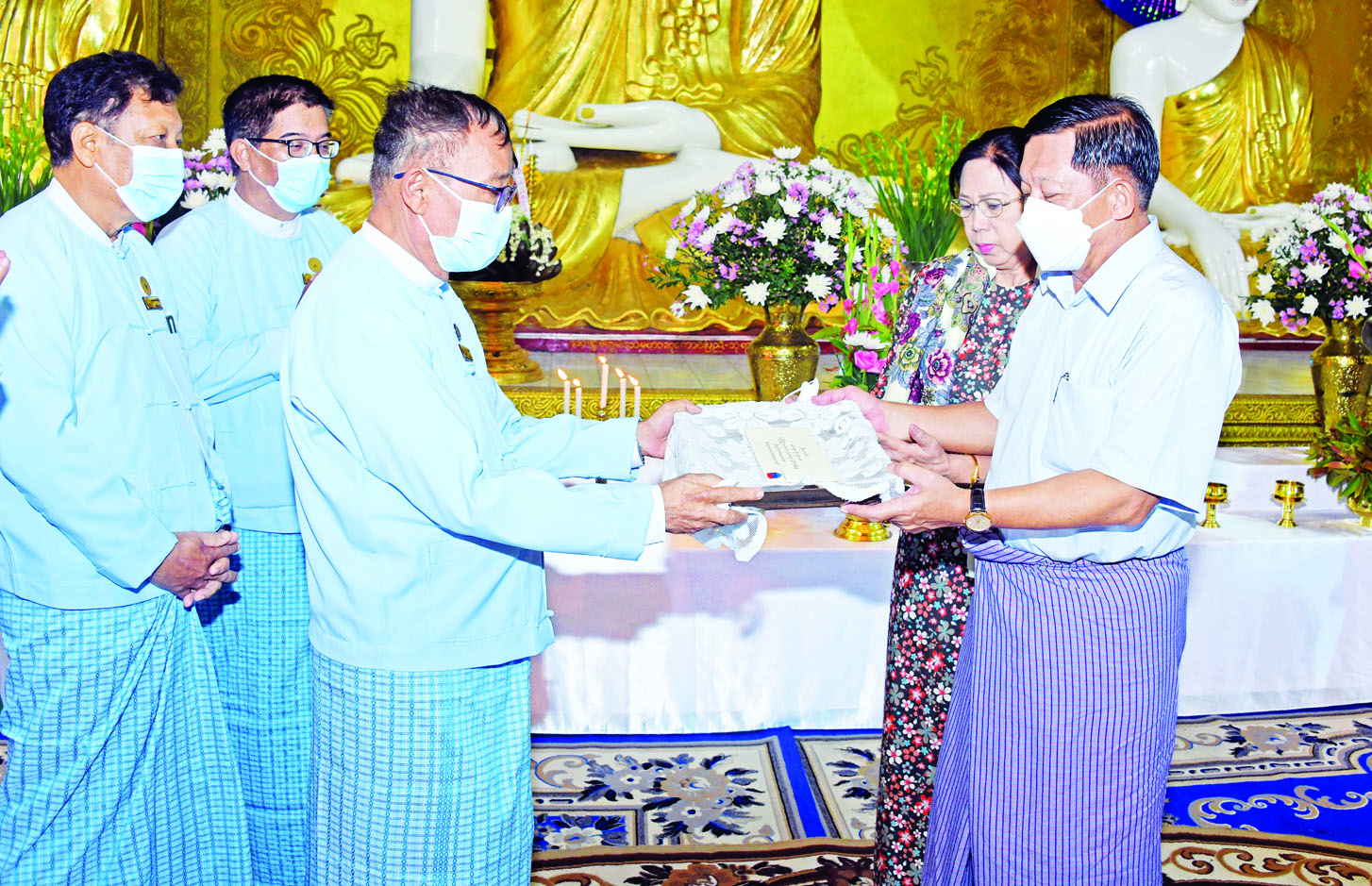 ထို့နောက် နိုင်ငံတော်စီမံအုပ်ချုပ်ရေးကောင်စီဥက္ကဋ္ဌ နိုင်ငံတော်ဝန်ကြီးချုပ်သည် ဘုရားကြီး၏ ဧည့်သည်တော်မှတ်တမ်းစာအုပ်တွင် လက်မှတ်ရေးထိုးသည်။ ယင်းနောက် ဘုရားကြီးအတွက် အလှူငွေများပေးအပ်လှူဒါန်းရာ ဂေါပကအဖွဲ့မှ တာဝန်ရှိသူများက လက်ခံရယူပြီး ဓမ္မလက်ဆောင်များ ပြန်လည်ပေးအပ်သည်။