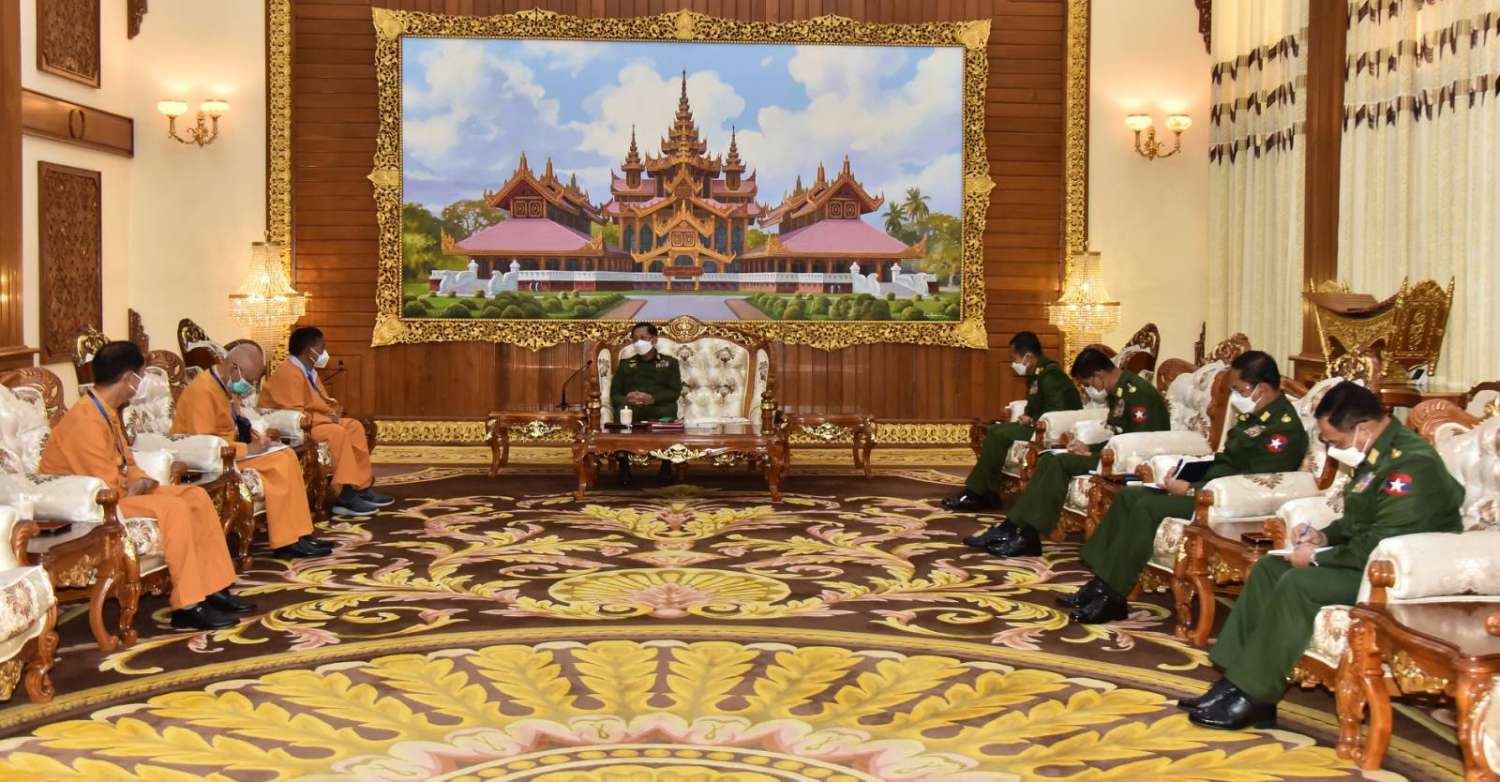 ယင်းနောက် နိုင်ငံတော်စီမံအုပ်ချုပ်ရေးကောင်စီဥက္ကဋ္ဌ တပ်မတော်ကာကွယ်ရေးဦးစီးချုပ်က တပ်မတော်သည် တိုင်းပြည်ကိုထိန်းသိမ်းစောင့်ရှောက်သူ (Guardian) အဖြစ် ဆက်လက် ဆောင်ရွက်သွားမည်ဖြစ်ပြီး ဥပဒေနှင့်အညီ ဆောင်ရွက်လျက်ရှိသည့် အခြေအနေများ၊ တိုင်းရင်းသားအဖွဲ့များအနေဖြင့်လည်း ဒီမိုကရေစီနှင့် ဖက်ဒရယ်အခွင့်အရေးကို ရရှိရန်အတွက် တရားဥပဒေနှင့်အညီ၊ စည်းကမ်းနှင့်အညီ၊ ဒီမိုကရေစီကျင့်စဉ်နှင့်အညီ လုပ်ကိုင် ဆောင်ရွက်ကြရန်လိုသည့် အခြေအနေများနှင့် ပတ်သက်၍ ပြန်လည်ဆွေးနွေး ပြောကြားပြီး ငြိမ်းချမ်းရေးဆိုင်ရာကိစ္စရပ်များ၊ ဒေသဖွံ့ဖြိုးရေးဆိုင်ရာကိစ္စရပ်များနှင့်ပတ်သက်၍ နှစ်ဖက်အမြင်များကို ရင်းနှီးပွင့်လင်းစွာ အပြန်အလှန် ဆွေးနွေးခဲ့ကြသည်။