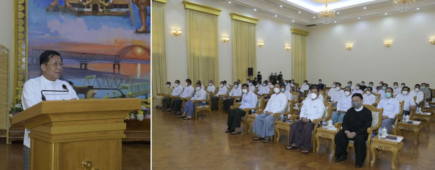 နိုင်ငံ့စီးပွားရေးမြှင့်တင်ရေးအတွက် စီမံဆောင်ရွက် ဦးစွာနိုင်ငံတော်စီမံအုပ်ချုပ်ရေးကောင်စီဥက္ကဋ္ဌ နိုင်ငံတော်ဝန်ကြီးချုပ်က နိုင်ငံ့စီးပွား မြှင့်တင်ရေးရန်ပုံငွေမှ ရန်ပုံငွေလွှဲအပ်ခြင်းနှင့် စပ်လျဉ်း၍ အမှာစကားပြောကြားရာတွင် နိုင်ငံ့စီးပွားရေး ဖွံ့ဖြိုးတိုးတက်ရေးဖော်ဆောင်ရာတွင် ပိုမိုထိရောက်စွာ ဆောင်ရွက်နိုင်ရေးအတွက် ယခုအခမ်းအနားကို ပြုလုပ်ခြင်းပင်ဖြစ်ကြောင်း၊ စီမံကိန်း နှင့်ဘဏ္ဍာရေးဝန်ကြီးဌာန အမျိုးသားသဘာဝဘေးအန္တရာယ်ဆိုင်ရာ စီမံခန့်ခွဲမှု ရန်ပုံငွေမှ ကျပ်ဘီလီယံ ၄၀၀ ကို နိုင်ငံ့စီးပွားရေး ဖွံ့ဖြိုးတိုးတက်ရေးအတွက် သီးသန့် ရန်ပုံငွေတစ်ရပ် ထူထောင်ပြီး နိုင်ငံ့စီးပွားရေးမြှင့်တင်နိုင်ရန် အသုံးပြုနိုင်ရန် စီမံဆောင်ရွက်ခဲ့ ခြင်းဖြစ်ကြောင်း၊ ထိုသို့ဆောင်ရွက်ရာတွင် လယ်ယာစီးပွား မြှင့်တင်ရေးနှင့် ပြည်နယ်နှင့်တိုင်းဒေသကြီး၊ ကိုယ်ပိုင်အုပ်ချုပ်ခွင့်ရဒေသများ၏ စီးပွားရေး မြှင့်တင်ရေးဟူ၍ နှစ်မျိုးခွဲမြှင့်တင်ဆောင်ရွက်နိုင်ရန် စဉ်းစားဆောင်ရွက်ခဲ့ ခြင်းဖြစ်ကြောင်း။