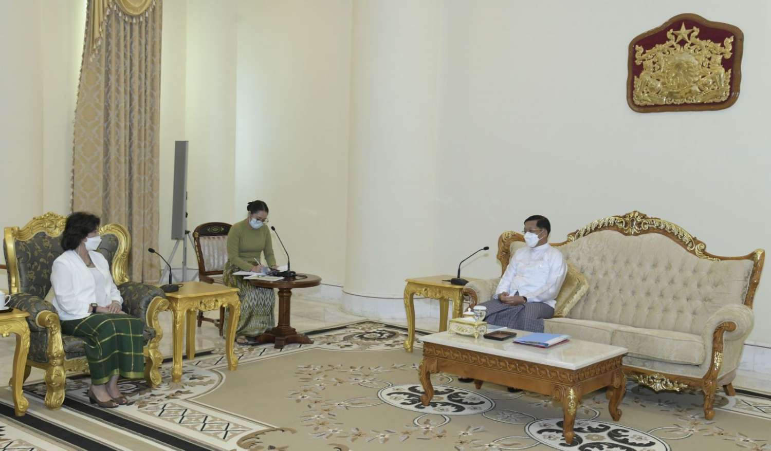 နိုင်ငံ‌တော်စီမံအုပ်ချုပ်ရေးကောင်စီဥက္ကဋ္ဌ နိုင်ငံတော်ဝန်ကြီးချုပ် ဗိုလ်ချုပ်မှူးကြီး မင်းအောင်လှိုင် ကုလသမဂ္ဂအတွင်းရေးမှူးချုပ်၏ မြန်မာနိုင်ငံဆိုင်ရာ အထူးကိုယ်စားလှယ် Ms. Noeleen Heyzer ကို လက်ခံတွေ့ဆုံ