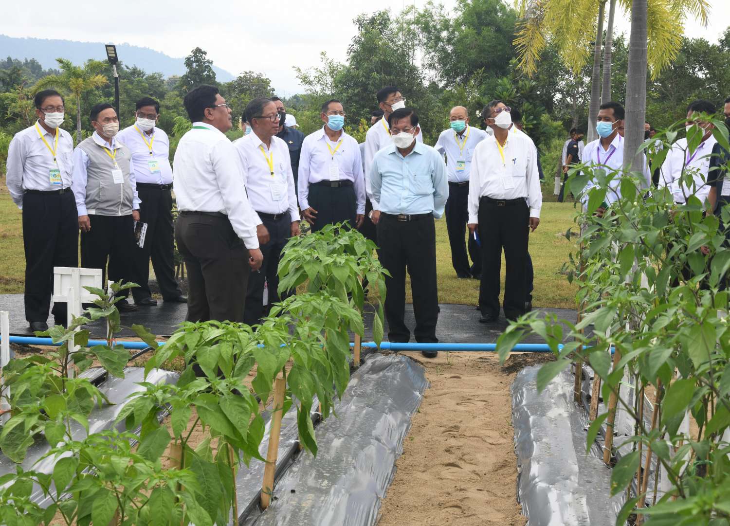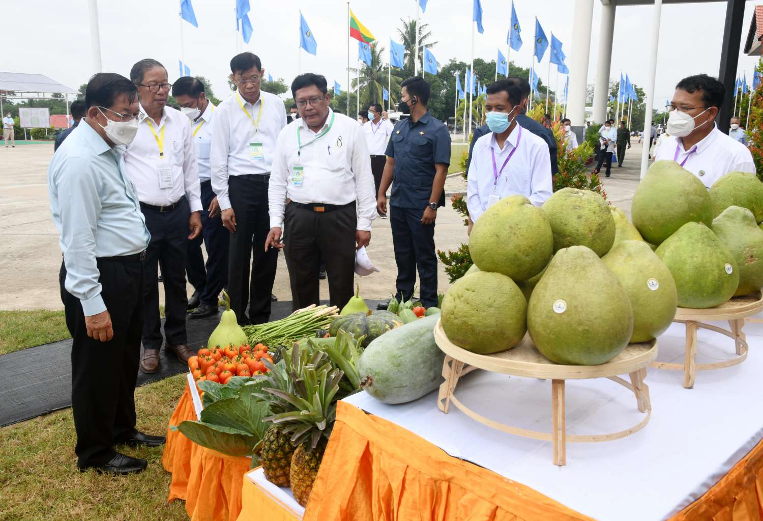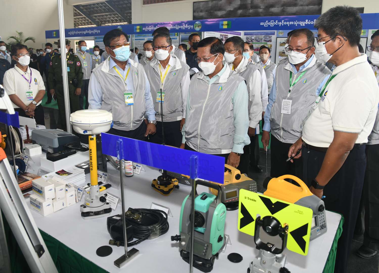 ယင်းနောက် နိုင်ငံတော်စီမံအုပ်ချုပ်ရေးကောင်စီဥက္ကဋ္ဌ နိုင်ငံတော်ဝန်ကြီးချုပ်နှင့် အဖွဲ့ဝင်များသည် အခမ်းအနားတက်ရောက်လာကြသည့် နိုင်ငံတစ်ဝန်းရှိ ရေအသုံးချသူများ အဖွဲ့ခေါင်းဆောင် တောင်သူများကို ရင်းရင်းနှီးနှီးနှုတ်ဆက်စကား ပြောကြားပြီး ဆည်မြောင်းနှင့်ရေအသုံးချမှု စီမံခန့်ခွဲရေးဦးစီးဌာန၏ ရေအသုံးချသူများအဖွဲ့ လှုပ်ရှားဆောင်ရွက်မှု မှတ်တမ်းပြခန်း၊ ငလိုက်ရေလှောင်တမံ ဆည်ရေသောက်စနစ်ပြခန်း၊ ဆည်မြောင်းပညာရပ်ဖွံ့ဖြိုးမှု လေ့ကျင့်ရေးသင်တန်းကျောင်းပြခန်း၊ ဘူမိဗေဒဌာနခွဲမှ မြေအောက်စူးစမ်းလေ့လာခြင်းလုပ်ငန်းများ ဆောင်ရွက်ရာတွင် အသုံးပြုသော စက်ကိရိယာများပြခန်း၊ ရေလှောင်တမံများ၏ အရေးပေါ်အခြေအနေ ကြိုတင်စီမံခန့်ခွဲမှု စီမံချက်ပြခန်း၊ နေရောင်ခြည်စွမ်းအင်သုံး အနိမ့်တင်၊ အမြင့်တင် ရေစုပ်စက်များဖြင့် ရေတင်ယူခြင်းပြကွက်၊ စက်မှုလယ်ယာဦးစီးဌာန၏ စက်မှုလယ်ယာစနစ်တကျ လယ်မြေဖော်ထုတ်ခြင်းလုပ်ငန်းပြခန်း၊ ပတ်လည်ရေဖျန်းစနစ်ဖြင့် စိုက်ခင်းများ ရေပေးဝေခြင်း ပြခန်း၊ မြန်မာနိုင်ငံ ဆန်စပါးအသင်းချုပ်နှင့် စိုက်ပျိုးရေး၊ မွေးမြူရေးနှင့် ဆည်မြောင်းဝန်ကြီးဌာနတို့ ပူးပေါင်းဆောင်ရွက်သည့် သဘာဝမြေဩဇာထုတ်လုပ်မှု ပြခန်းများနှင့် ပြင်ပပြကွက်များ၌ ရေစုပ်စက်ကိရိယာများ၊ ရေဖျန်းစက်ကိရိယာများ၊ လယ်ယာသုံးစက်ကိရိယာများ မြန်မာ့လယ်ယာသုံး စက်ကိရိယာစက်ရုံ(အင်းကုန်း) မှထုတ်လုပ်သည့် နေရောင်ခြည်စွမ်းအင်သုံးရေပန့် စနစ်၊ Head Mist Sprinkler ရေမှုန်ဖျန်းကိရိယာ Water Supply Flimpipe (Drip) ရေ အစက်ချကိရိယာ Rootzone Mini-Sprinkler အသေးစားအမြစ်ဇုန်ရေဖျန်းကိရိယာများ အသုံးပြု၍ သီးနှံများစိုက်ပျိုးထားရှိမှုများ၊ အမြင့်တင်နှင့် အနိမ့်တင် ရွေ့လျားဆိုလာစနစ်သုံး ရေတင်စနစ်၊ ရေစီးနှုန်းတိုင်းကိရိယာ Global Water Flow Probe ဖြင့် တိုင်းတာဆောင်ရွက်မှု၊ တူးမြောင်းများ အမျိုးအစားအလိုက် လိုင်နင်စီခြင်း သရုပ်ပြသထားမှုများ၊ ရေထိန်းညှိရေတံခါးများ တပ်ဆင်၍ ရေပေးဝေမှု သရုပ်ပြသမှုများနှင့် ရေသွင်းစနစ်ဖြင့် စိုက်ပျိုးထားသည့် မိုးစပါးစိုက်ခင်းများကို လှည့်လည်ကြည့်ရှု စစ်ဆေးရာ စိုက်ပျိုးရေး၊ မွေးမြူရေးနှင့်ဆည်မြောင်းဝန်ကြီးဌာန ပြည်ထောင်စုဝန်ကြီးနှင့် တာဝန်ရှိသူများက ရှင်းလင်းတင်ပြကြသည်။