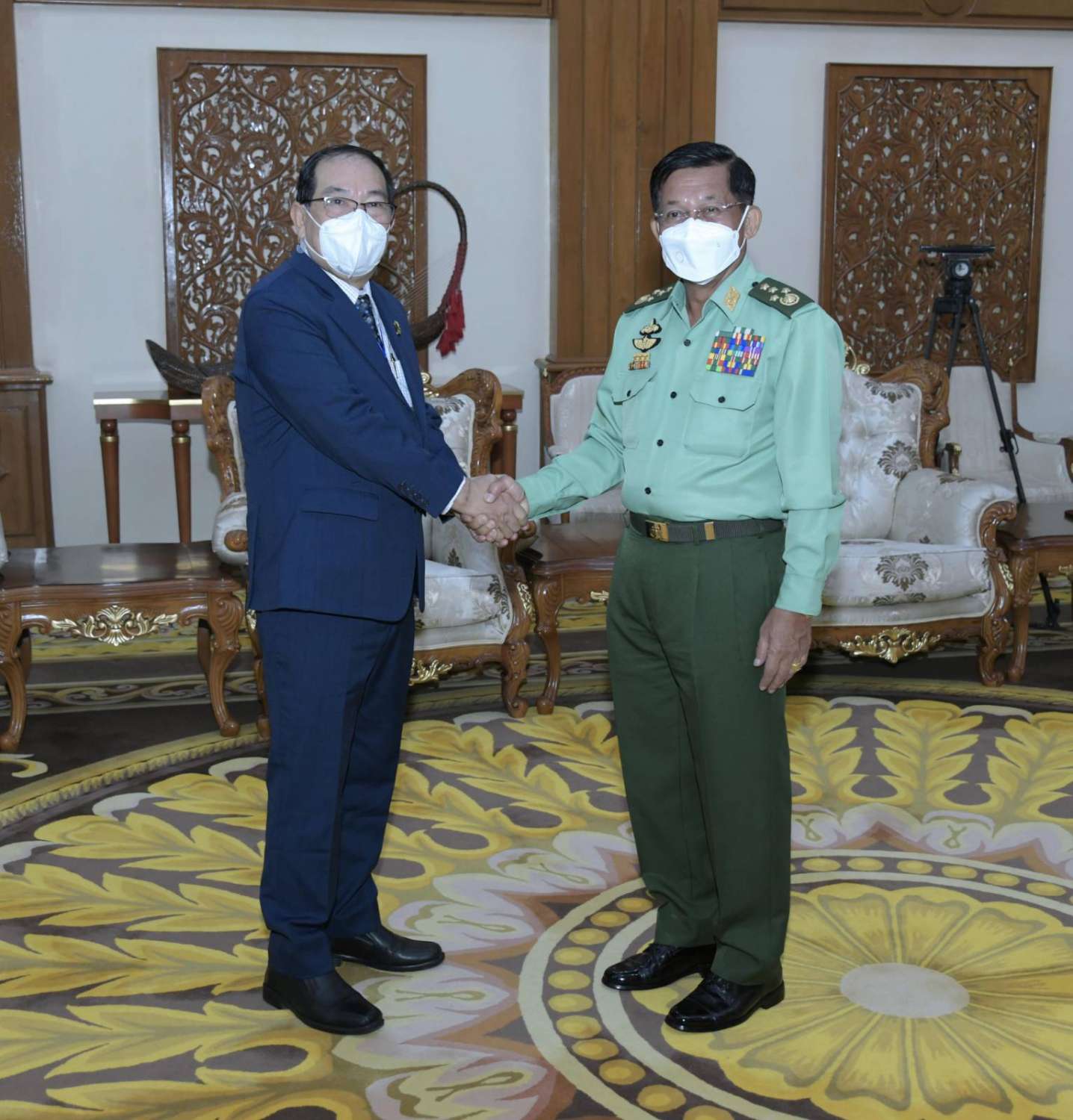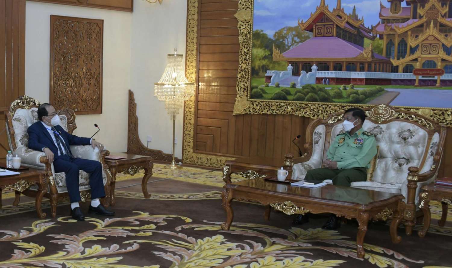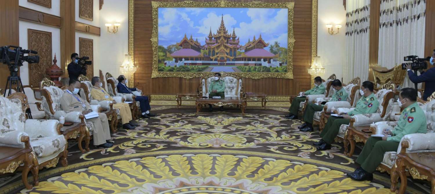 နိုင်ငံတော်စီမံအုပ်ချုပ်ရေးကောင်စီဥက္ကဋ္ဌ တပ်မတော်ကာကွယ်ရေးဦးစီးချုပ် ဗိုလ်ချုပ်မှူးကြီး မင်းအောင်လှိုင်သည် သျှမ်းပြည်ပြန်လည်ထူထောင်ရေးကောင်စီ (RCSS) အဖွဲ့ဥက္ကဋ္ဌ ဗိုလ်ချုပ်ကြီး ယွက်ဆစ်ဦးဆောင်သည့် ငြိမ်းချမ်းရေးကိုယ်စားလှယ်အဖွဲ့အား ယနေ့နံနက်ပိုင်းတွင် နေပြည်တော်ရှိဘုရင့်နောင်ရိပ်သာ ဧည့်ခန်းမဆောင်၌တွေ့ဆုံ၍ ငြိမ်းချမ်းရေးဆိုင်ရာကိစ္စရပ်များ ဆွေးနွေးသည်။