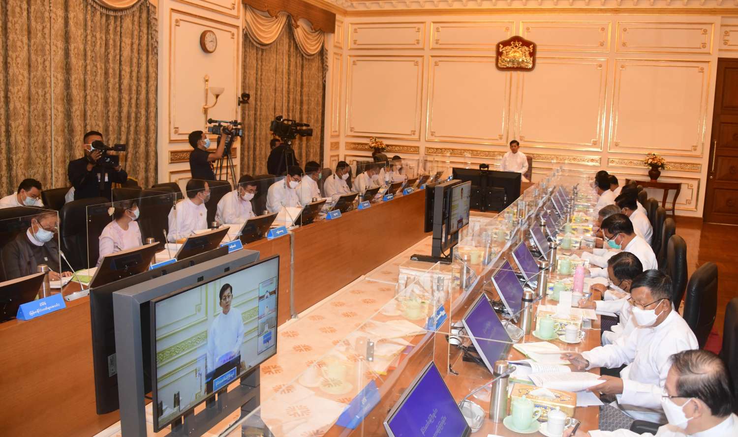 အစည်းအဝေးသို့ အသေးစား၊ အငယ်စားနှင့် အလတ်စား စီးပွားရေးလုပ်ငန်းများ ဖွံ့ဖြိုးတိုးတက်ရေးဗဟိုကော်မတီ ဒုတိယဥက္ကဋ္ဌ၊ နိုင်ငံတော်စီမံအုပ်ချုပ်ရေးကောင်စီ ဒုတိယဥက္ကဋ္ဌ ဒုတိယဝန်ကြီးချုပ် ဒုတိယဗိုလ်ချုပ်မှူးကြီး စိုးဝင်း၊ ဗဟိုကော်မတီဝင်၊ နိုင်ငံတော်စီမံအုပ်ချုပ်ရေးကောင်စီအဖွဲ့ဝင် ဒုတိယဗိုလ်ချုပ်ကြီး မိုးမြင့်ထွန်း၊ ပြည်ထောင်စုဝန်ကြီးများ၊ မြန်မာနိုင်ငံတော်ဗဟိုဘဏ်ဥက္ကဋ္ဌ၊ နေပြည်တော်ကောင်စီဥက္ကဋ္ဌနှင့် ဒုတိယဝန်ကြီးများ၊ မြန်မာနိုင်ငံဘဏ်များအသင်းဥက္ကဋ္ဌ၊ ပြည်ထောင်စုသမ္မတ မြန်မာနိုင်ငံတော် ကုန်သည်များနှင့် စက်မှုလက်မှုလုပ်ငန်းရှင်များအသင်းချုပ် (UMFCCI) ဥက္ကဋ္ဌ၊ မြန်မာနိုင်ငံအင်ဂျင်နီယာအသင်းချုပ်နာယကတို့ တက်ရောက်ကြပြီး တိုင်းဒေသကြီးနှင့် ပြည်နယ်ဝန်ကြီးချုပ်များက Video Conferencing ဖြင့်တက်ရောက်ကြသည်။