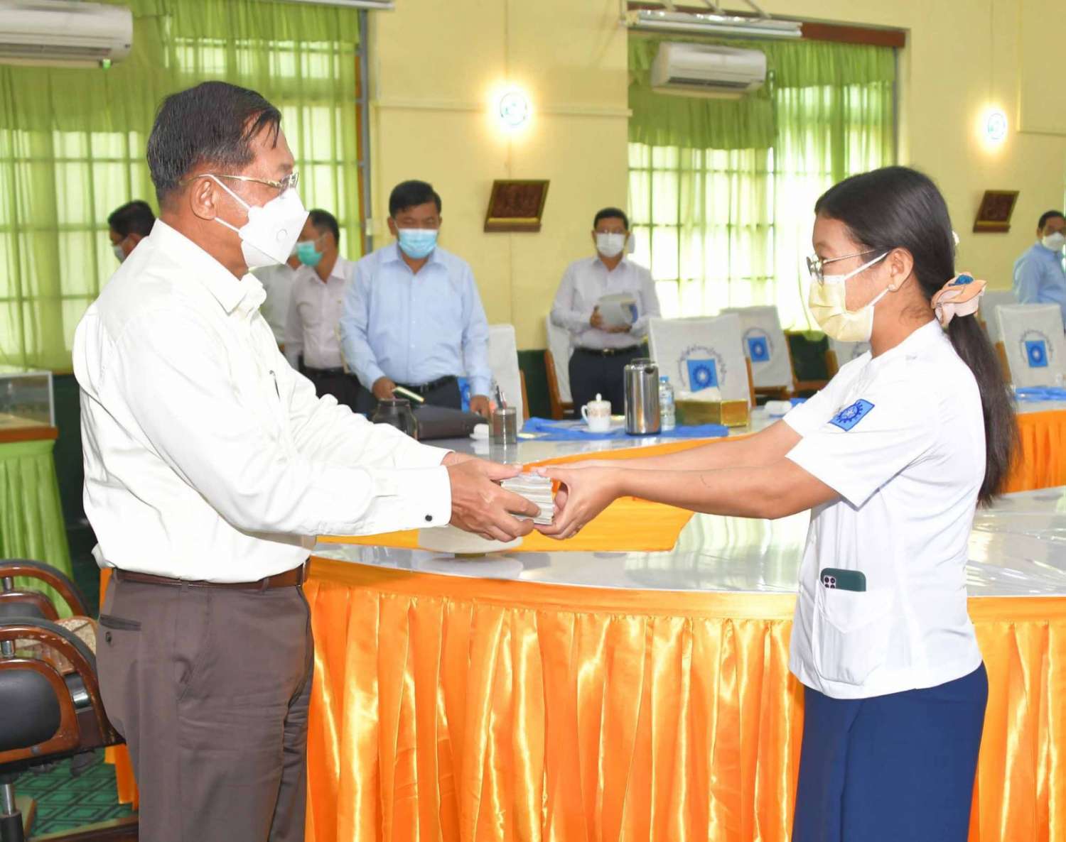 ယင်းနောက် နိုင်ငံတော်စီမံအုပ်ချုပ်ရေးကောင်စီဥက္ကဋ္ဌ တပ်မတော်ကာကွယ်ရေး ဦးစီးချုပ်သည် ခင်းကျင်းပြထားသော စက်ရုံမှထုတ်လုပ်ထားသည့် ယူနီဖောင်းပိတ်စများနှင့် ချည်ထည်များ၏ အရည်အသွေးများအား ကြည့်ရှုစစ်ဆေးကာ စက်ရုံ ဝန်ထမ်းများအတွက် ချီးမြှင့်ငွေများ ပေးအပ်ခဲ့ကြောင်း သတင်းရရှိသည်။