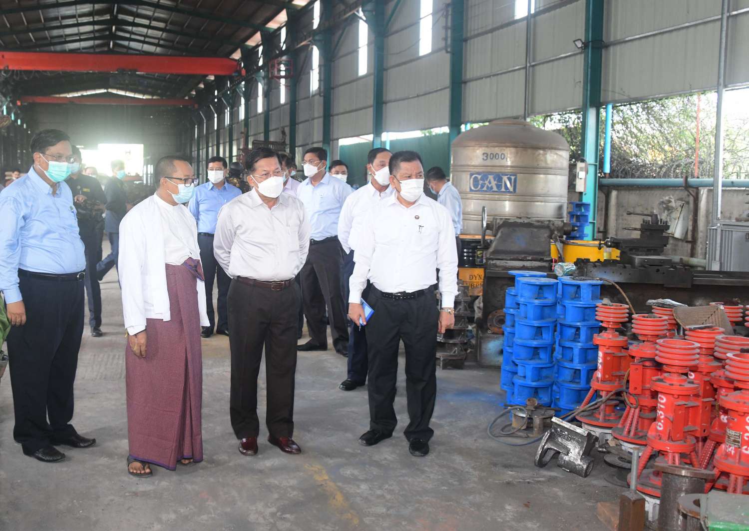 နိုင်ငံတော် စီမံအုပ်ချုပ်ရေးကောင်စီ ဥက္ကဋ္ဌ နိုင်ငံတော်ဝန်ကြီးချုပ် ဗိုလ်ချုပ်မှူးကြီး မင်းအောင်လှိုင်သည် ကောင်စီတွဲဖက် အတွင်းရေးမှူး ဒုတိယဗိုလ်ချုပ်ကြီး ရဲဝင်းဦး၊ ပြည်ထောင်စုဝန်ကြီးများ ဖြစ်ကြသည့် ဦးတင်ထွဋ်ဦး၊ ဦးလှမိုး၊ ဒေါက်တာ ချာလီသန်း၊ မန္တလေးတိုင်း ဒေသကြီး ဝန်ကြီးချုပ် ဦးမောင်ကို၊ ညှိနှိုင်းကွပ်ကဲရေးမှူး (ကြည်း၊ ရေ၊ လေ) ဗိုလ်ချုပ်ကြီး မောင်မောင်အေး၊ ကာကွယ်ရေးဦးစီးချုပ်ရုံးမှ တပ်မတော်အရာရှိကြီး များ၊ အလယ်ပိုင်းတိုင်း စစ်ဌာနချုပ်တိုင်းမှူး ဗိုလ်ချုပ် ကိုကိုဦးနှင့် အဖွဲ့ဝင်များ လိုက်ပါ၍ ယနေ့ နံနက်ပိုင်းတွင် မန္တလေးမြို့၊ စက်မှုဇုန်(၁)အတွင်း ကုန်ထုတ်လုပ်ငန်းများ ဆောင်ရွက်နေမှု အခြေအနေများကို သွားရောက်ကြည့်ရှု စစ်ဆေးသည်။