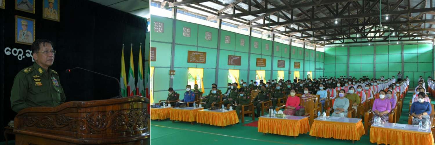 နိုင်ငံတော်စီမံအုပ်ချုပ်ရေးကောင်စီဥက္ကဋ္ဌ တပ်မတော်ကာကွယ်ရေးဦးစီးချုပ် ဗိုလ်ချုပ်မှူးကြီး မင်းအောင်လှိုင်သည် ယနေ့မွန်းလွဲပိုင်းတွင် ပြည်တပ်နယ်နှင့် ပန်းတောင်းတပ်နယ်တို့မှ အရာရှိ၊ စစ်သည်မိသားစုဝင်များအား ပြည်တပ်နယ်ရှိနဝဒေးခန်းမ၌ တွေ့ဆုံအမှာစကား ပြောကြားသည်။