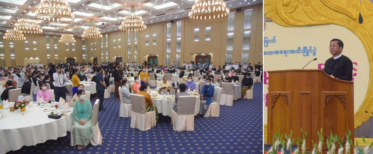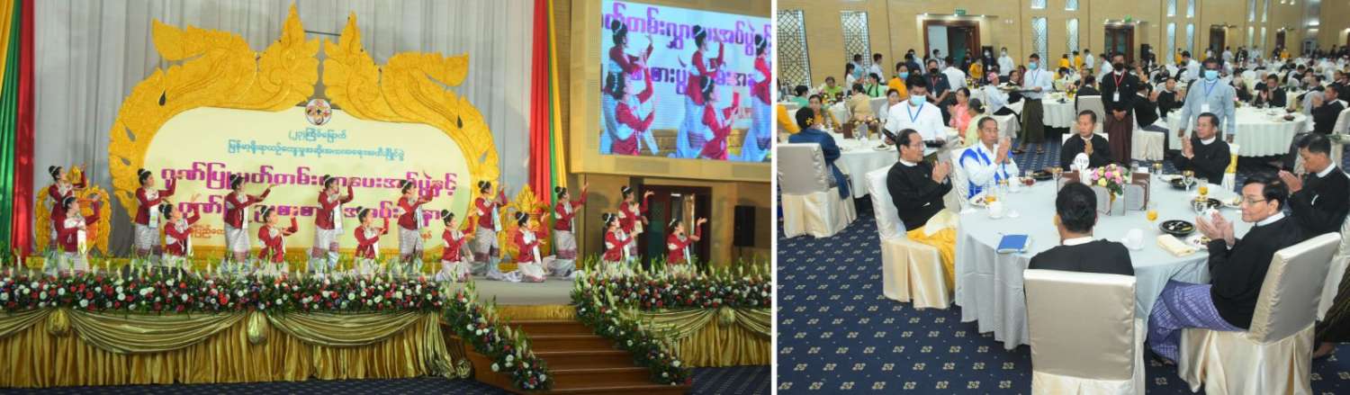 (၂၃)ကြိမ်မြောက် မြန်မာ့ရိုးရာယဉ်ကျေးမှု အဆို၊ အက၊ အရေး၊ အတီးပြိုင်ပွဲ ဂုဏ်ပြုမှတ်တမ်းလွှာပေးအပ်ပွဲနှင့် ဂုဏ်ပြုညစာစားပွဲအခမ်းအနားကို ယနေ့ညနေပိုင်းတွင် နေပြည်တော်ရှိ မြန်မာအပြည်ပြည်ဆိုင်ရာကွန်ဗင်းရှင်းဗဟိုဌာန-၂ ၌ ကျင်းပပြုလုပ်ရာ နိုင်ငံတော်စီမံအုပ်ချုပ်ရေးကောင်စီဥက္ကဋ္ဌ နိုင်ငံတော်ဝန်ကြီးချုပ် ဗိုလ်ချုပ်မှူးကြီးမင်းအောင်လှိုင် တက်ရောက်ချီးမြှင့်သည်။
