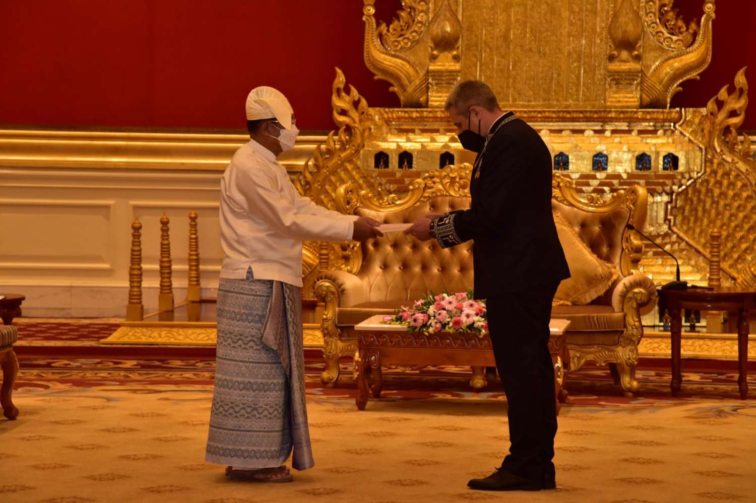 နိုင်ငံတော်စီမံအုပ်ချုပ်ရေးကောင်စီဥက္ကဋ္ဌ နိုင်ငံတော်ဝန်ကြီးချုပ် ဗိုလ်ချုပ်မှူးကြီး မင်းအောင်လှိုင်ထံ မြန်မာနိုင်ငံဆိုင်ရာ ဘယ်လာရုစ်နိုင်ငံ သံအမတ်ကြီးအဖြစ် ခန့်အပ်ရန် သဘောတူညီပြီးဖြစ်သော သံအမတ်ကြီး H.E. Mr. Uladzimir Baravikou သည် ယနေ့နံနက် ၁၀ နာရီတွင် နေပြည်တော်ရှိ နိုင်ငံတော်စီမံအုပ်ချုပ်ရေးကောင်စီဥက္ကဋ္ဌရုံး၊ သံတမန်ဆောင် ဧည့်ခန်းမ၌ ၎င်း၏သံအမတ်ခန့်အပ်လွှာကို ပေးအပ်သည်။