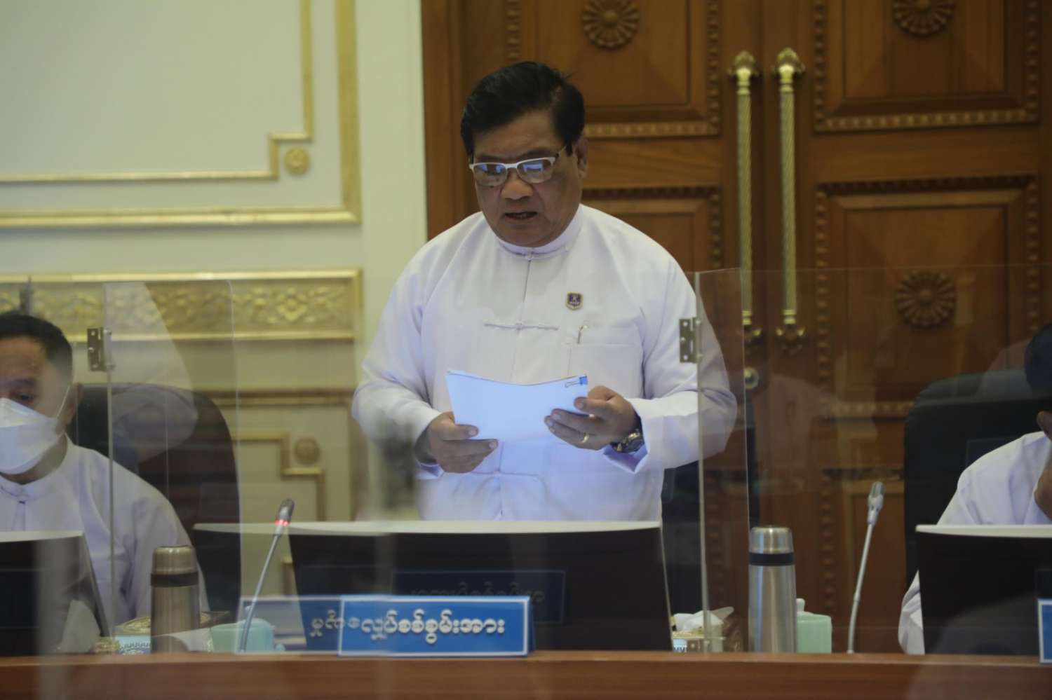 ပြည်ထောင်စုအစိုးရအဖွဲ့အစည်းအဝေး အမှတ်စဉ်(၈/၂၀၂၂)ကို ယနေ့မွန်းလွဲပိုင်းတွင် နေပြည်တော်ရှိ နိုင်ငံတော်စီမံအုပ်ချုပ်ရေးကောင်စီဥက္ကဋ္ဌရုံး အစည်းအဝေးခန်းမ၌ ကျင်းပရာ နိုင်ငံတော်စီမံအုပ်ချုပ်ရေးကောင်စီဥက္ကဋ္ဌ နိုင်ငံတော်ဝန်ကြီးချုပ် ဗိုလ်ချုပ်မှူးကြီးမင်းအောင်လှိုင် တက်ရောက်အမှာစကားပြောကြားသည်။