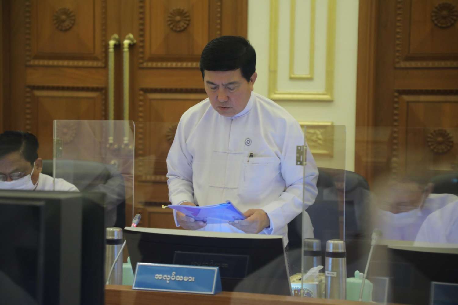 ယင်းနောက် အစည်းအဝေးသို့ တက်ရောက်လာကြသည့် ပြည်ထောင်စုဝန်ကြီးများက သက်ဆိုင်ရာ ကဏ္ဍအလိုက် ရှင်းလင်းတင်ပြကြသည်။