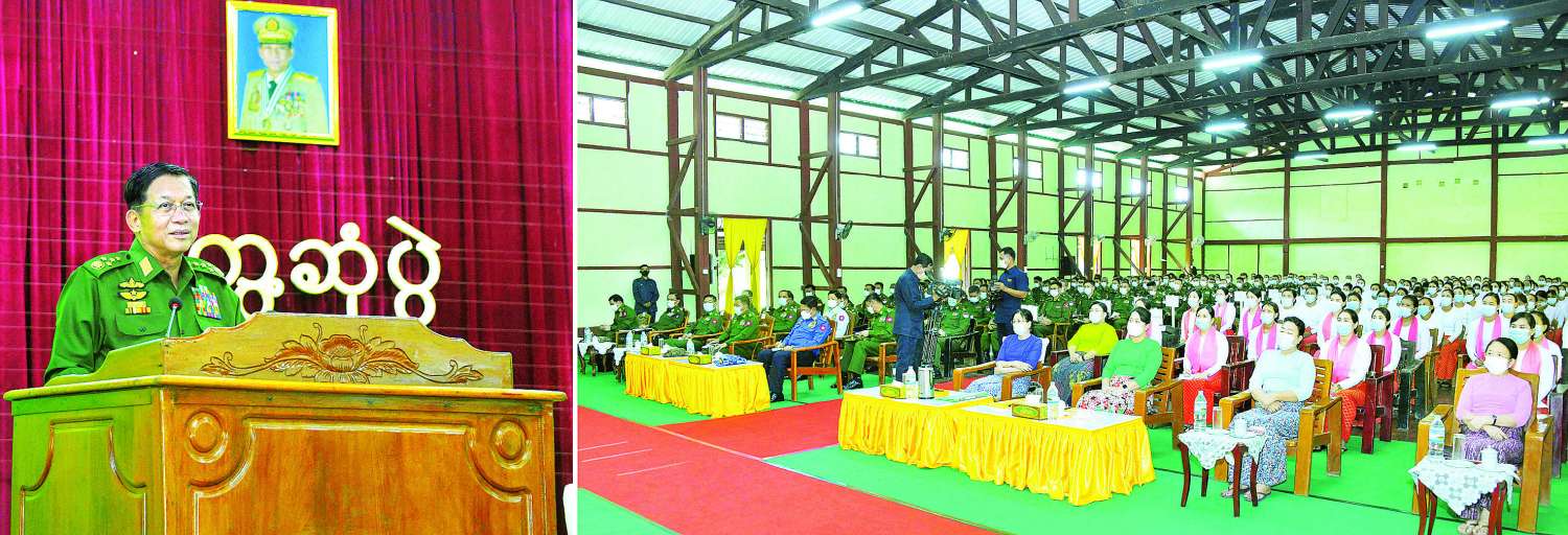 ထို့နောက် နိုင်ငံတော်စီမံအုပ်ချုပ်ရေးကောင်စီဥက္ကဋ္ဌ တပ်မတော်ကာကွယ်ရေးဦးစီးချုပ်က ဆက်လက်ပြောကြားရာတွင် တပ်မတော်၏ အဓိကတာဝန်သည် နိုင်ငံတော်ကာကွယ်ရေးတာဝန်များကို ထမ်းဆောင်ရန်ဖြစ်ကြောင်း၊ သို့သော်လည်း လက်ရှိအချိန်တွင် နိုင်ငံတော်၏ တာဝန်များကိုပါ တာဝန်ယူထိန်းသိမ်းဆောင်ရွက်နေရခြင်းဖြစ်သဖြင့် နိုင်ငံတော်တည်ငြိမ် အေးချမ်းရေး၊ ဖွံ့ဖြိုးတိုးတက်ရေးတို့ကိုလည်း ဆောင်ရွက်နေရကြောင်း၊ စွမ်းရည်ရှိသည့် တပ်မတော်ဖြစ်ရေးအတွက် တပ်မတော်သားများအနေဖြင့် မိမိတို့တစ်ဦးချင်း၏ စွမ်းရည်များ တိုးတက်အောင် အမြဲမပြတ်လေ့ကျင့်ဆောင်ရွက်နေရမည်ဖြစ်ကြောင်း၊ တပ်မတော်ကို လူ့စွမ်းအားအရင်းအမြစ်ဖွံ့ဖြိုးတိုးတက်ရေး၊ ခေတ်မီလက်နက်ကိရိယာများ ပိုင်ဆိုင်နိုင်ရေးနှင့် ကျွမ်းကျင်စွာအသုံးပြုတတ်စေရေး ခေတ်အဆက်ဆက်ကြိုးပမ်းဆောင်ရွက်ခဲ့ကြောင်း၊ နိုင်ငံတိုင်းတွင် မိမိတို့နိုင်ငံ၏ ကာကွယ်ရေးစွမ်းပကား မြင့်မားစေရေးအတွက် ကြိုးပမ်းတည်ဆောက်လျက်ရှိသကဲ့သို့ မိမိတို့နိုင်ငံအနေဖြင့်လည်း နိုင်ငံတော်၏ကာကွယ်ရေးစွမ်းပကားမြင့်မားစေရေး အမြဲမပြတ်ကြိုးပမ်းတည်ဆောက်နေရမည်ဖြစ်ကြောင်း၊ ရှိရင်းစွဲ လူ့စွမ်းအားအရင်းအမြစ်များနှင့် လက်နက်ကိရိယာများကို စွမ်းရည်စွမ်းပကားမြင့်မားနေစေရေး၊ ခေတ်နှင့်လျော်ညီသည့် စွမ်းရည်စွမ်းအားရှိစေရေး အမြဲမပြတ်လေ့ကျင့်ဆောင်ရွက်နေကြရမည်ဖြစ်ကြောင်း၊ စစ်သည်တစ်ဦးချင်းအနေဖြင့် မိမိတို့နေ့စဉ်လေ့ကျင့်ဆောင်ရွက်ရမည့် လေ့ကျင့်ခန်းများ၊ တာဝန်များကို မှန်မှန်ကန်ကန်ဆောင်ရွက်နေမည်ဆိုပါက တစ်ဦးချင်း၏ စွမ်းရည်တိုးတက်လာနိုင်မည်ဖြစ်ပြီး စစ်ရေးသတိ၊ စစ်ရေးအသိ အမြဲရှိနေရန်လည်း လိုအပ်မည်ဖြစ်ကြောင်း။