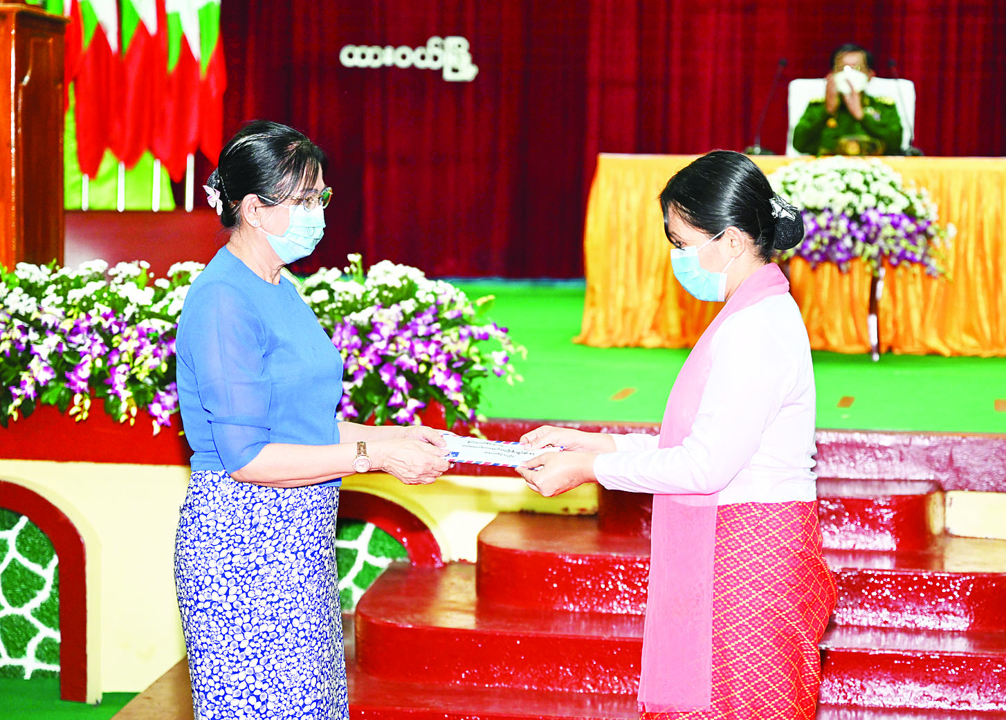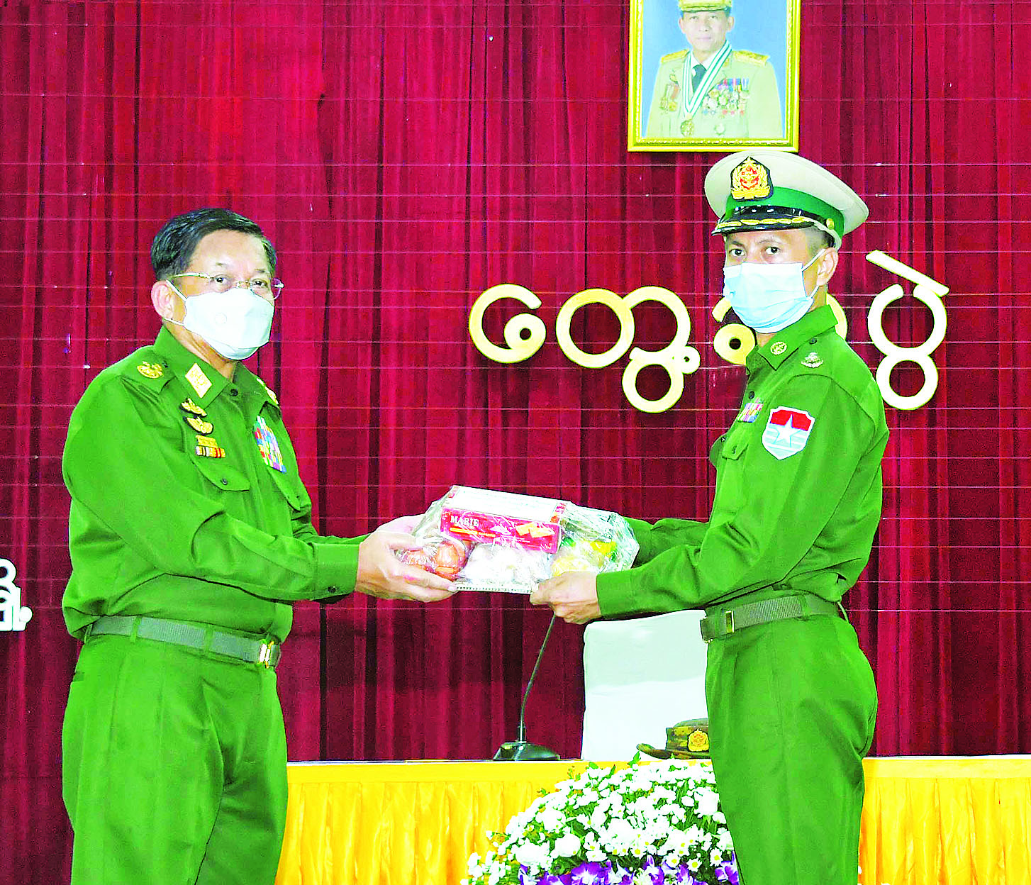 ယင်းနောက် နိုင်ငံတော်စီမံအုပ်ချုပ်ရေးကောင်စီဥက္ကဋ္ဌ တပ်မတော်ကာကွယ်ရေးဦးစီးချုပ်က အရာရှိ၊ စစ်သည်၊ မိသားစုများအတွက် စားသောက်ဖွယ်ရာပစ္စည်းများကိုပေးအပ်ရာ တပ်နယ်မှတာဝန်ရှိသူတစ်ဦးကလည်းကောင်း၊ နိုင်ငံတော်စီမံအုပ်ချုပ်ရေးကောင်စီဥက္ကဋ္ဌ တပ်မတော်ကာကွယ်ရေးဦးစီးချုပ်၏ဇနီးက တပ်နယ်မိခင်နှင့် ကလေးစောင့်ရှောက်ရေးအသင်းအတွက် ချီးမြှင့်ငွေများကိုပေးအပ်ရာ နယ်မြေခံတပ်မဌာနချုပ်မှူး၏ ဇနီးကလည်းကောင်း အသီးသီးလက်ခံရယူကြသည်။