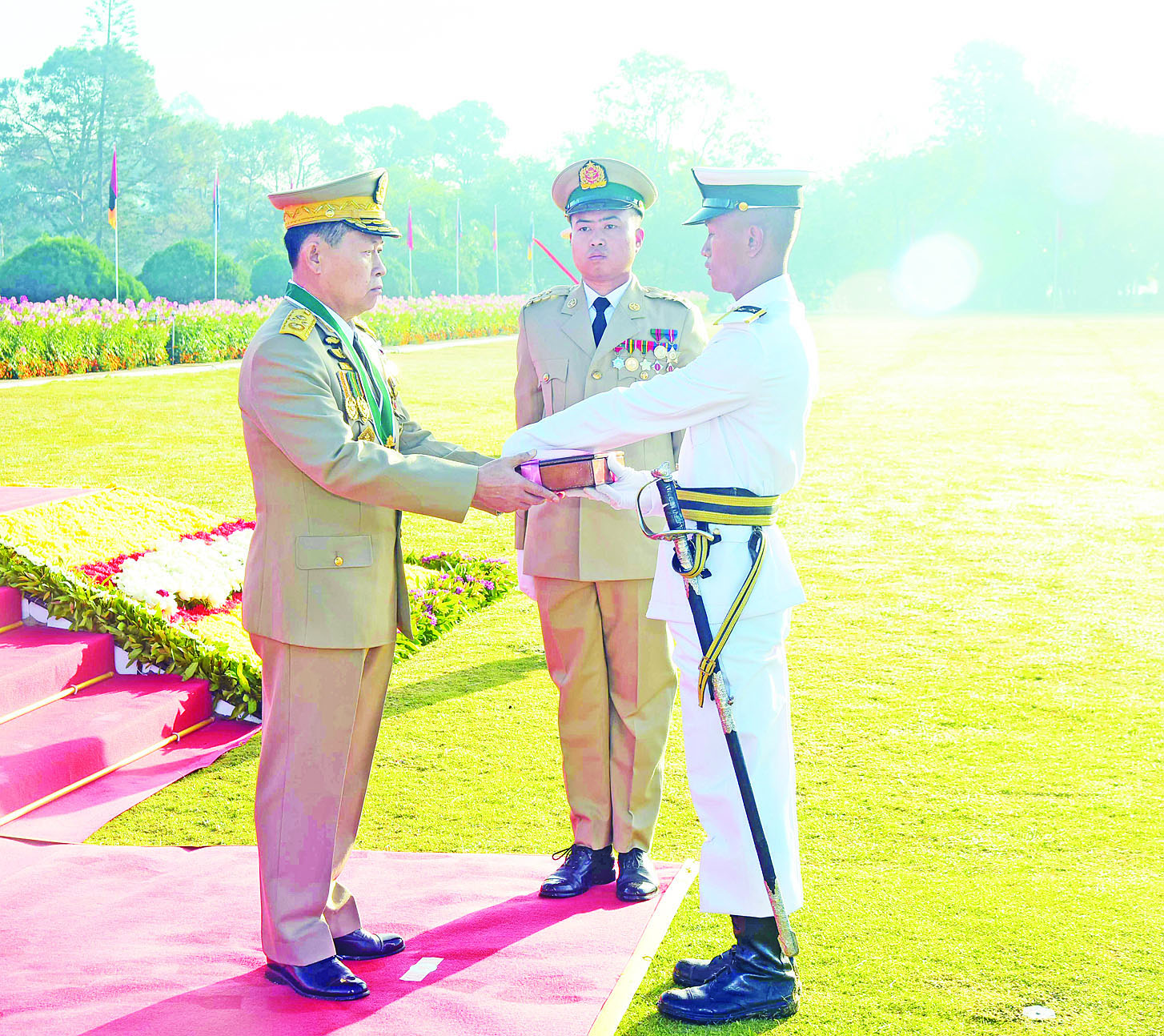 ဦးစွာ နိုင်ငံတော်စီမံအုပ်ချုပ်ရေးကောင်စီဒုတိယဥက္ကဋ္ဌ ဒုတိယတပ်မတော် ကာကွယ်ရေးဦးစီးချုပ် ကာကွယ်ရေးဦးစီးချုပ်(ကြည်း) ဒုတိယဗိုလ်ချုပ်မှူးကြီး သရေစည်သူစိုးဝင်းက ဗိုလ်လောင်းတပ်ခွဲများ၏ အလေးပြုခြင်းကိုခံယူပြီးနောက် အလံတော်အဖွဲ့နှင့် ကျောင်းဆင်းဗိုလ်လောင်း တပ်ခွဲများအားစစ်ဆေးသည်။ ၎င်းနောက် ဗိုလ်လောင်းတပ်ခွဲများက အနှေးလျှောက်၊ အမြန်လျှောက်ဖြင့် ချီတက်အလေးပြုကြသည်။ ထို့နောက် နိုင်ငံတော်စီမံအုပ်ချုပ်ရေးကောင်စီ ဒုတိယဥက္ကဋ္ဌ ဒုတိယတပ်မတော် ကာကွယ်ရေးဦးစီးချုပ် ကာကွယ်ရေးဦးစီးချုပ်(ကြည်း) ဒုတိယဗိုလ်ချုပ်မှူးကြီး သရေစည်သူစိုးဝင်းက တပ်မတော်နည်းပညာတက္ကသိုလ် ဗိုလ်လောင်းသင်တန်း အမှတ်စဉ်(၂၄)သင်တန်းမှ အောင်စစ်သည်ဆုရရှိသူ ဗိုလ်လောင်းအမှတ် ၈၁၃၈ ဗိုလ်လောင်း ရဲလင်းထွဋ်၊ လေ့ကျင့်ရေးထူးချွန်ဆုရရှိသူ ဗိုလ်လောင်းအမှတ် ၈၁၇၃၊ ဗိုလ်လောင်း ဟိန်းသူအောင်၊ စာပေထူးချွန်ဆုရရှိသူ ဗိုလ်လောင်းအမှတ် ၈၀၉၈၊ ဗိုလ်လောင်း နိုင်နိုင်ဟန်ထွန်းတို့အား ဆုများအသီးသီး ပေးအပ်ချီးမြှင့်သည်။