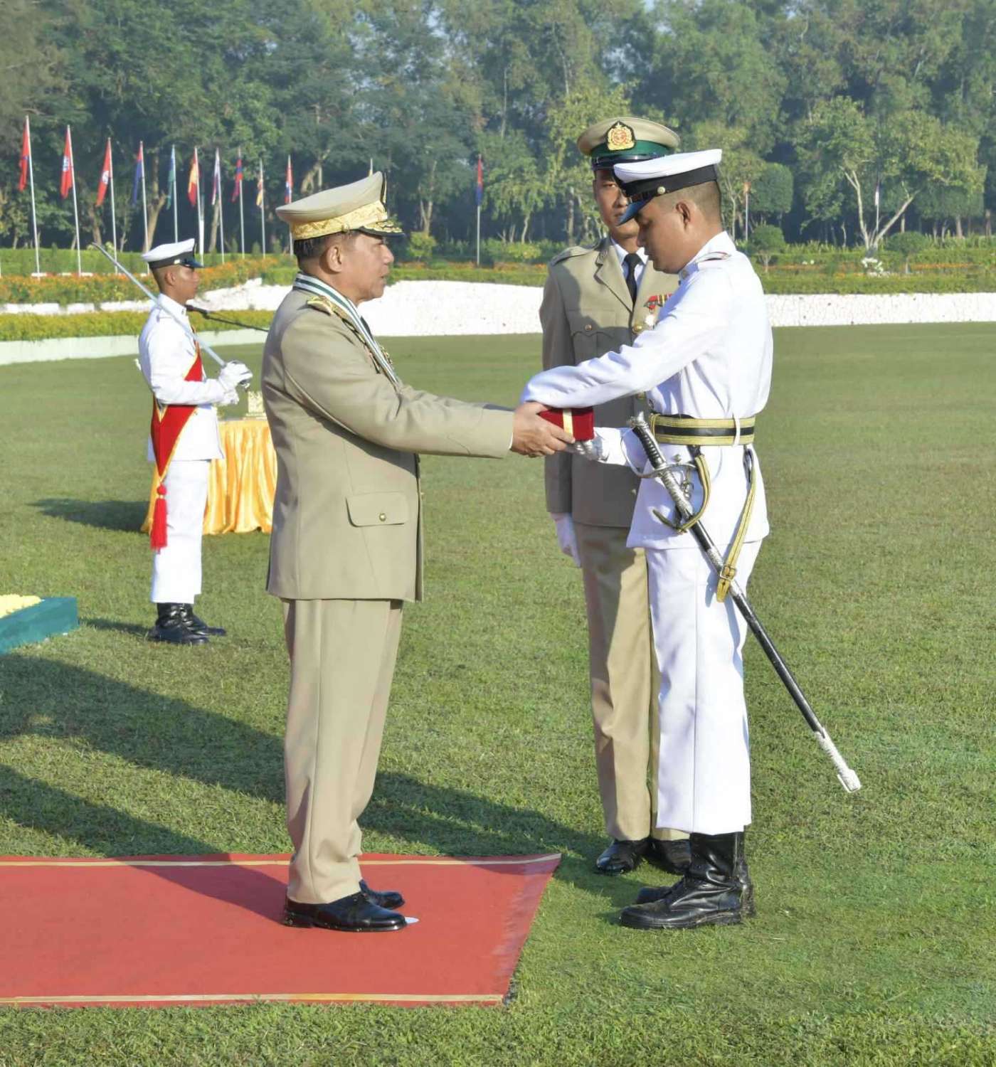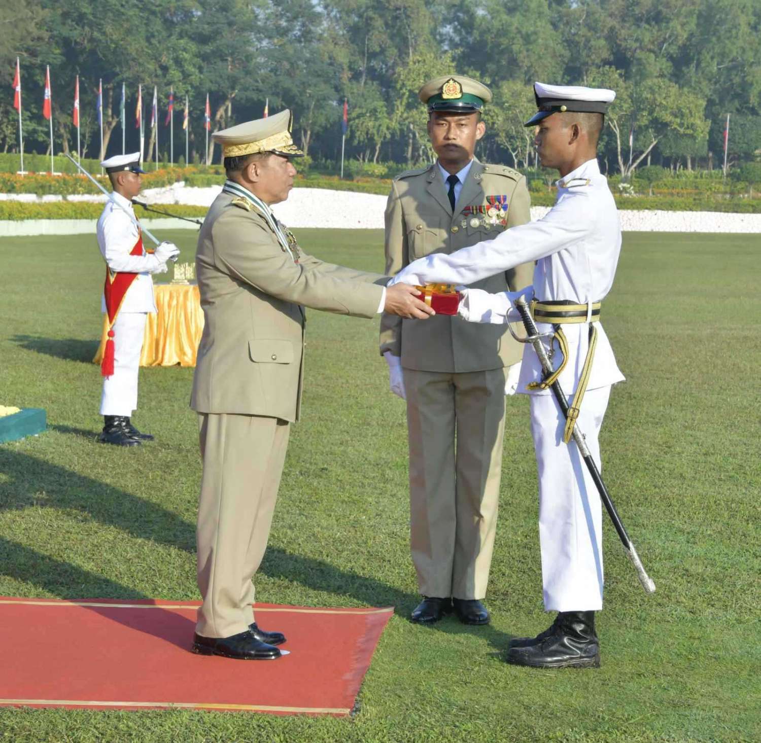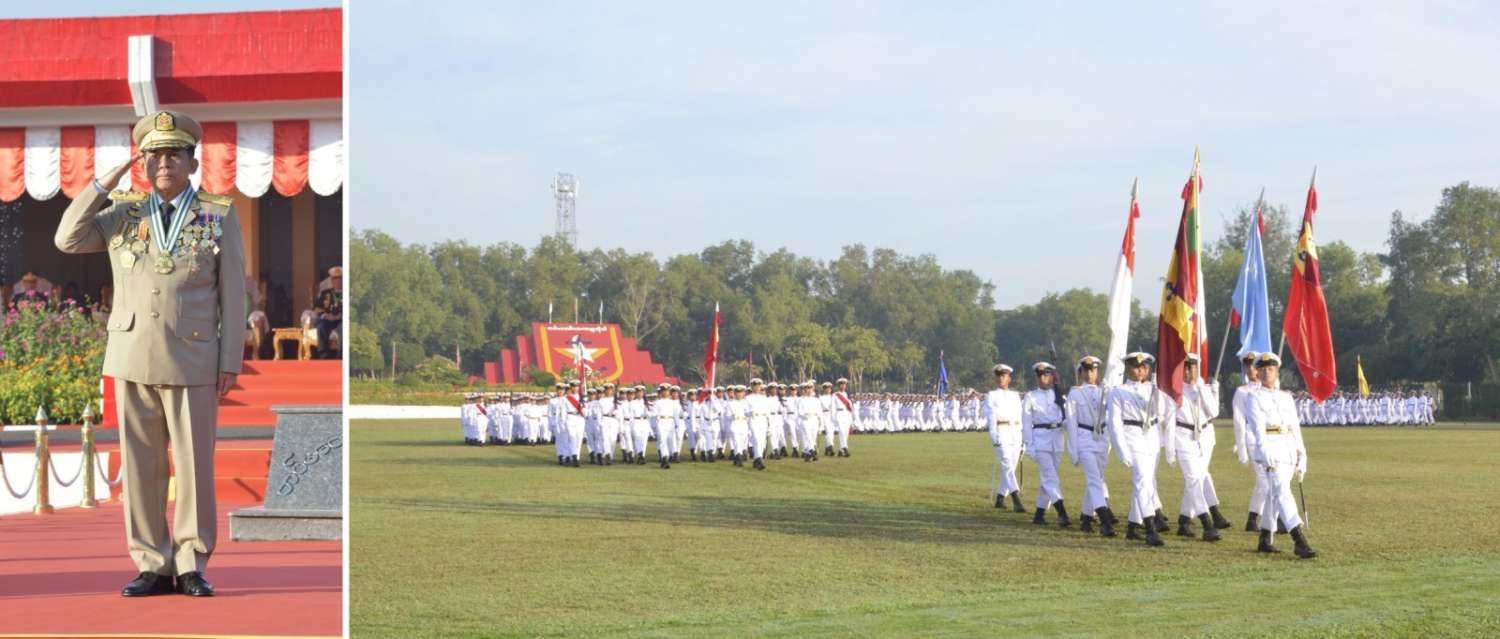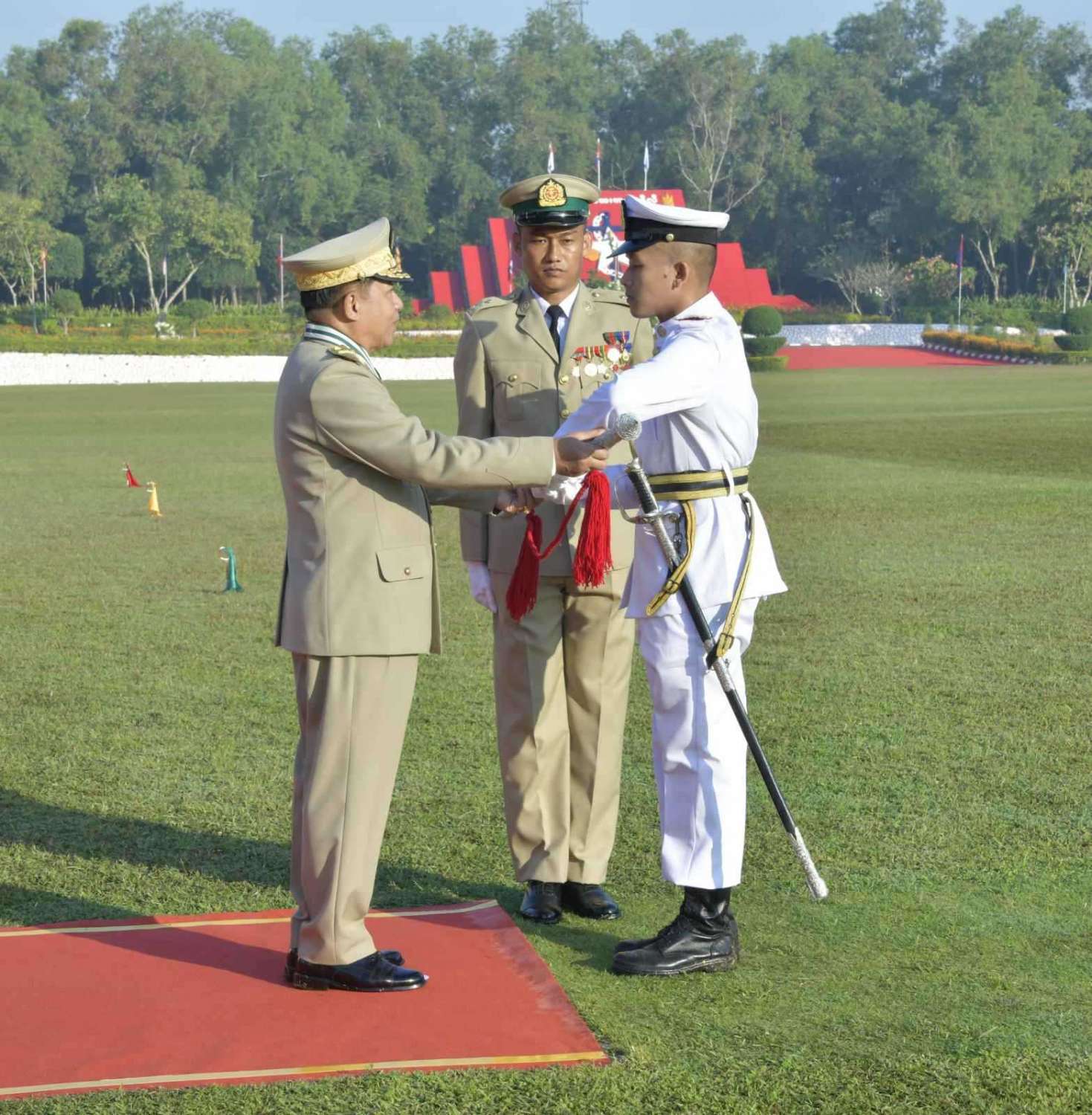 နိုင်ငံတော်စီမံအုပ်ချုပ်ရေးကောင်စီဥက္ကဋ္ဌ တပ်မတော်ကာကွယ်ရေးဦးစီးချုပ် ဗိုလ်ချုပ်မှူးကြီး မဟာသရေစည်သူ မင်းအောင်လှိုင် တပ်မတော်ဆေးတက္ကသိုလ် ဗိုလ်လောင်းသင်တန်းအမှတ်စဉ် (၂၃) သင်တန်းဆင်း ဂုဏ်ပြုစစ်ရေးပြ အခမ်းအနားသို့ တက်ရောက် မိန့်ခွန်းပြောကြား