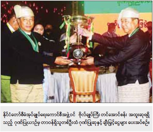 ထို့နောက် ကောင်စီဝင် ဗိုလ်ချုပ်ကြီး မြထွန်းဦးက တိုင်းဒေသကြီးနှင့် ပြည်နယ် ဂုဏ်ပြုယာဉ်        တတိယဆုရရှိသည့် မန္တလေးတိုင်းဒေသကြီးနှင့် ပြည်ထောင်စုဝန်ကြီးဌာန ဂုဏ်ပြုယာဉ်    တတိယဆု  ရရှိသည့် ဆောက်လုပ်ရေးဝန်ကြီးဌာနတို့အတွက် ဂုဏ်ပြုဆုနှင့် ချီးမြှင့်ငွေများကို       တာဝန်ရှိသူများထံ ပေးအပ်ချီးမြှင့်သည်။