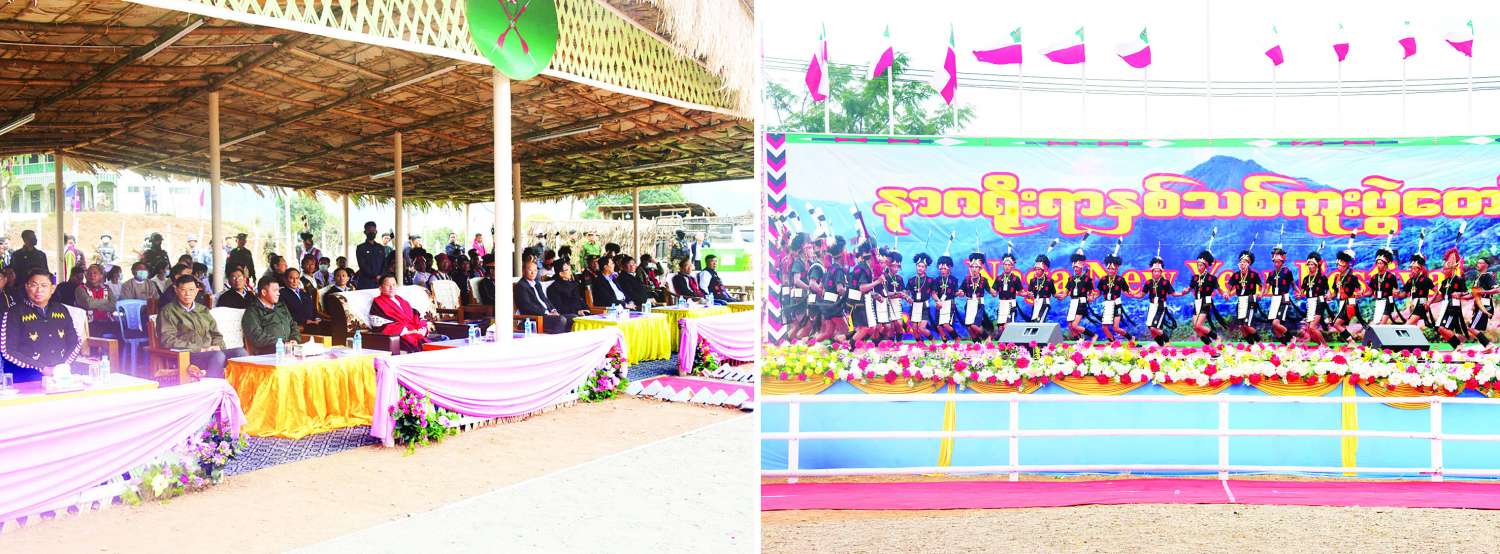 ယင်းနောက် နိုင်ငံတော်စီမံအုပ်ချုပ်ရေးကောင်စီဥက္ကဋ္ဌ နိုင်ငံတော် ဝန်ကြီးချုပ်နှင့် အဖွဲ့ဝင်များသည် နာဂရိုးရာအကအလှများဖြင့် ဖျော်ဖြေမှုများကို ကြည့်ရှုအားပေးခဲ့ပြီး အတူတကွ ပါဝင်ဆင်နွဲခဲ့ကာ နာဂမျိုးနွယ်စုအကအဖွဲ့များအား ဂုဏ်ပြုချီးမြှင့် ငွေများ ပေးအပ်သည်။