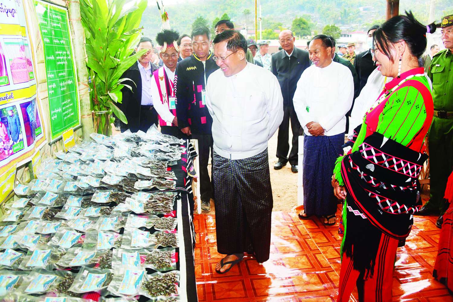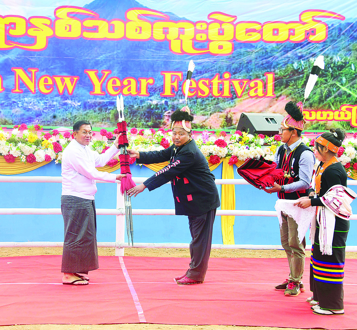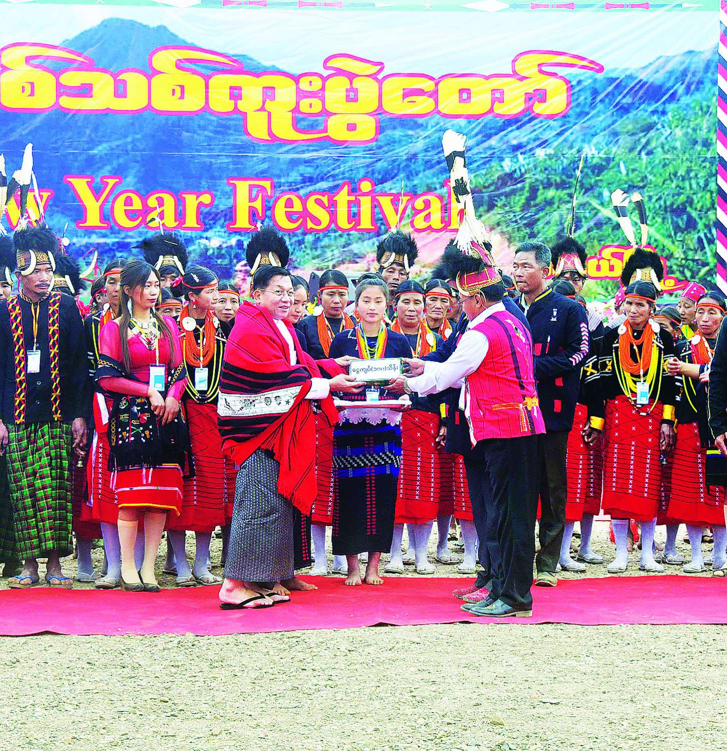 နာဂရိုးရာနှစ်သစ်ကူးပွဲတော်အခမ်းအနားကို ယနေ့မွန်းလွဲပိုင်းတွင် နာဂကိုယ်ပိုင် အုပ်ချုပ်ခွင့်ရဒေသ၊ လဟယ်မြို့၌ ကျင်းပပြုလုပ်ရာ နိုင်ငံတော်စီမံအုပ်ချုပ်ရေးကောင်စီဥက္ကဋ္ဌ နိုင်ငံတော်ဝန်ကြီးချုပ် ဗိုလ်ချုပ်မှူးကြီး မင်းအောင်လှိုင် တက်ရောက်ချီးမြှင့်သည်။