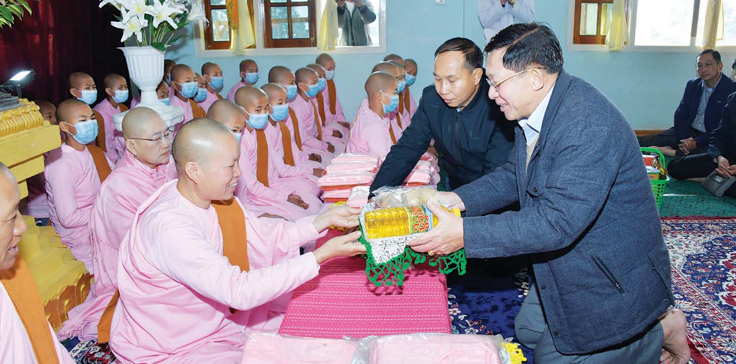 နိုင်ငံတော်စီမံအုပ်ချုပ်ရေးကောင်စီဥက္ကဋ္ဌ နိုင်ငံတော်ဝန်ကြီးချုပ် ဗိုလ်ချုပ်မှူးကြီး မင်းအောင်လှိုင် နာဂကိုယ်ပိုင်အုပ်ချုပ်ခွင့်ရဒေသ လဟယ်မြို့ရှိ ထေရဝါဒဗုဒ္ဓသာသနာပြု(ဗဟို) ကျောင်းနှင့် ထေရဝါဒဗုဒ္ဓသာသနာပြုသီလရှင်ကျောင်းတို့သို့သွားရောက်၍ လှူဖွယ်ပစ္စည်းများ ဆက်ကပ်လှူဒါန်း