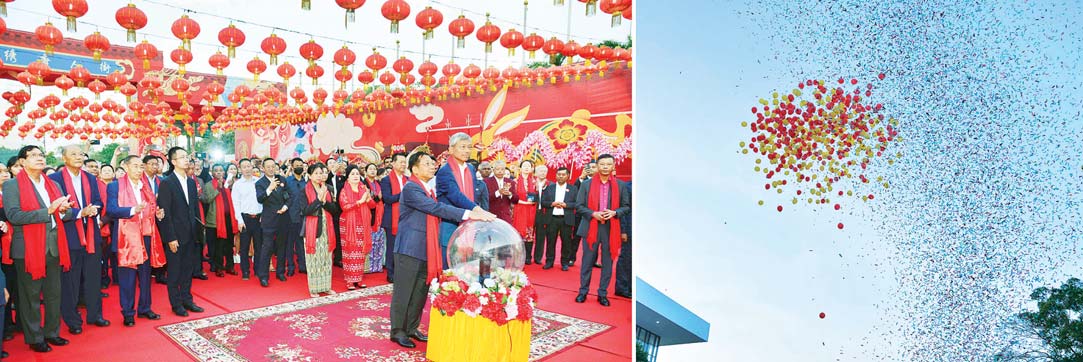 ယင်းနောက် တရုတ်နှစ်သစ်ကူးပွဲတော်ကို စတင်ကျင်းပရာ နိုင်ငံတော်စီမံအုပ်ချုပ်ရေးကောင်စီ ဥက္ကဋ္ဌ နိုင်ငံတော်ဝန်ကြီးချုပ်နှင့်ဇနီး၊ အခမ်းအနား တက်ရောက်လာကြသူများသည် တရုတ်ရိုးရာနဂါး အကအဖွဲ့များမှ ဂါရဝပြုကပြဖျော်ဖြေမှုကို ကြည့်ရှုအားပေးကြပြီး အကအဖွဲ့များနှင့်အတူ စုပေါင်းမှတ်တမ်းတင်ဓာတ်ပုံရိုက်ကူးကြကာ တရုတ်ရိုးရာ ယဉ်ကျေးမှုပြခန်းများနှင့် ဆိုင်ခန်းများကို လှည့်လည်ကြည့်ရှုကြသည်။ ၎င်းနောက် တရုတ်နှစ်သစ်ကူး ပွဲတော်အခမ်းအနား အထိမ်းအမှတ် မီးရှုးမီးပန်း ပစ်ဖောက်မှုများကို ကြည့်ရှုအားပေးကြသည်။